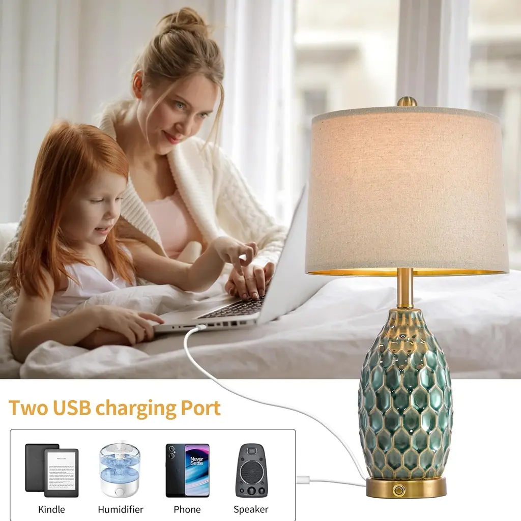 Modern Design: Simple modern style, in line with the aesthetics of young people, is a must-have item for creating a comfortable and soft home.This nightstand Lamp is the perfect gift for your friends.USB A+C Charging Ports: With built in 2 self-contained chargers, this bedside lamp offers you a more convenient way to charge your mobile phones, earphones, tablets, kindle readers and so on while lying in bed. 3-Way Dimmable Touch Control: Three brightness levels meet your different lighting needs in the bedroom or living room.The touch switch has a built-in sensitive sensor that makes it easy to choose the brightness level you want for stable sleep or a night light for care. Key lighting creates a warm atmosphere. High comfort brightness suitable for study or work. High Quality Control: Lamps are made of high quality materials, and the product quality meets international standards to provide security for your home lighting.