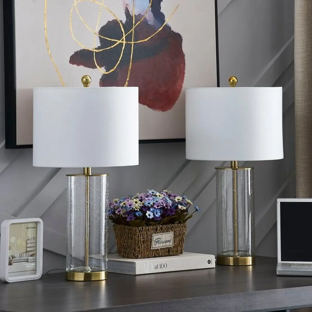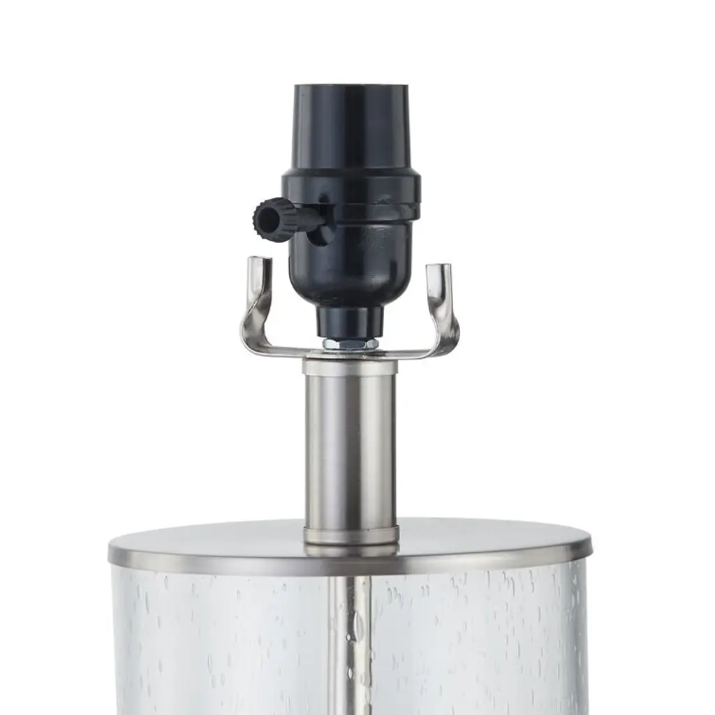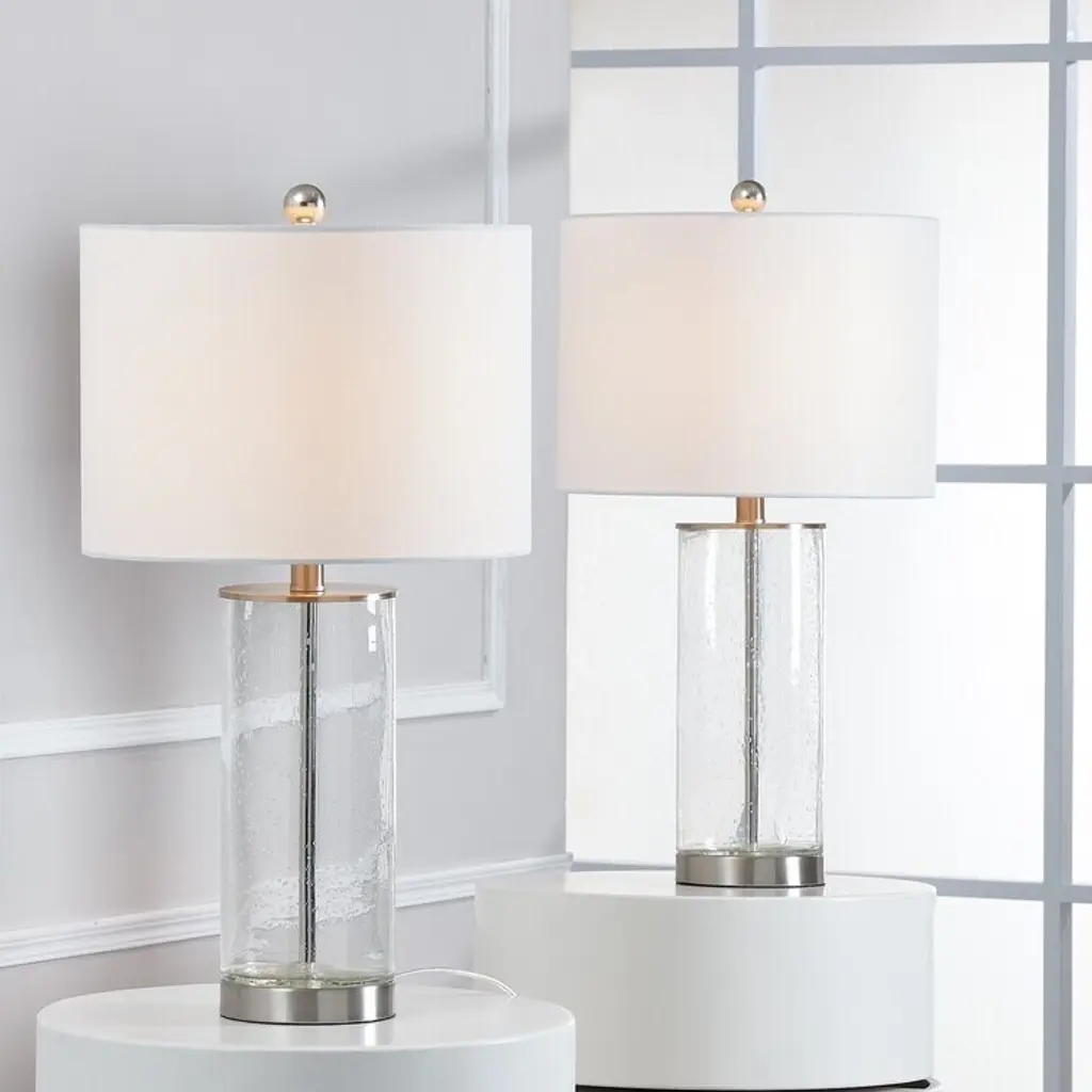 The Maxax Clear Glass Table Lamp Set may seem simple at first glance, but it is truly a unique piece of art. Each lamp is handcrafted with varying intensities and sizes, resulting in a one-of-a-kind design. The set includes two lamps and each features a 3-way rotary socket switch, a UL listing for safety, and a beautiful glass and metal construction.Features: