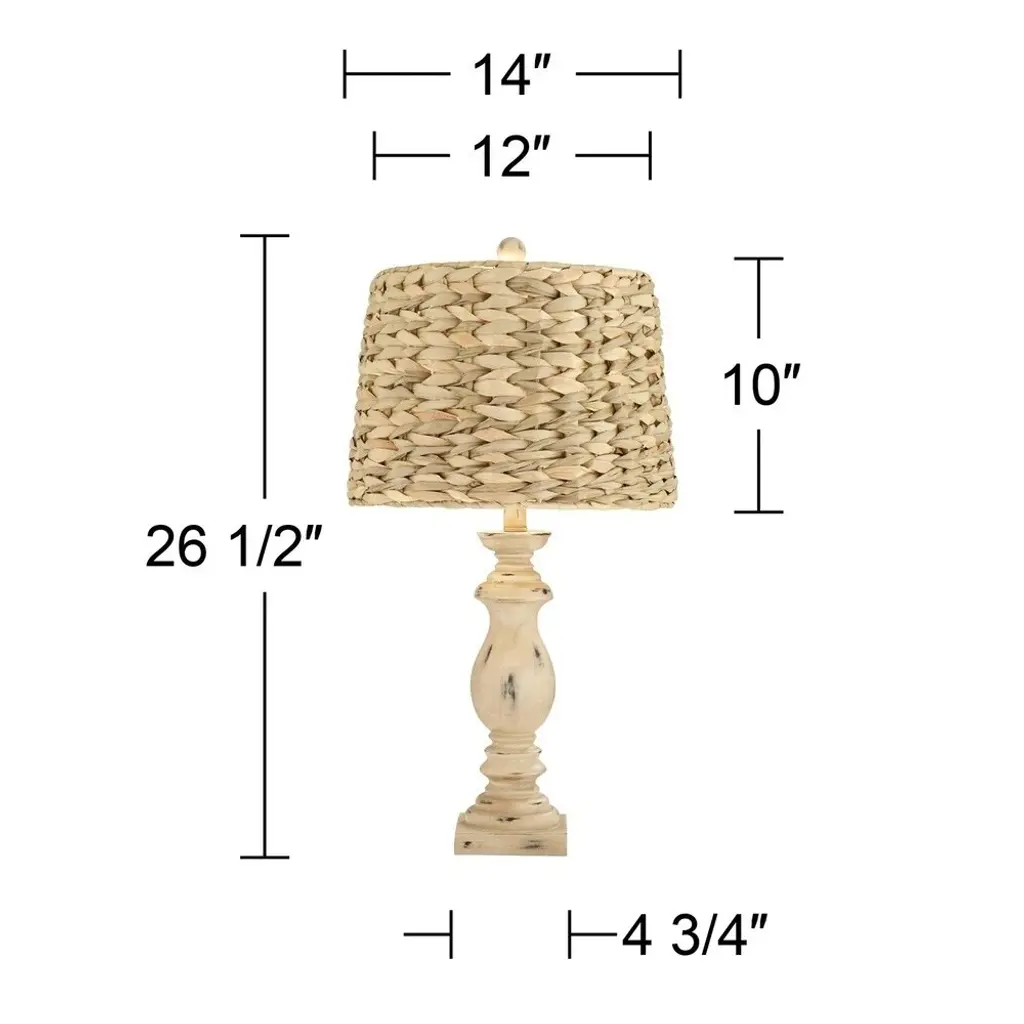 The 23" Sirocco Light Gray Resin With Rattan Shade Table Lamp is a stylish and functional addition to any room. Its light gray resin base provides a sturdy foundation, while the rattan shade adds a touch of natural elegance. This lamp is perfect for creating a warm and inviting atmosphere in your home.