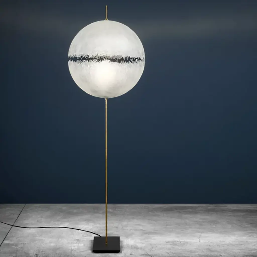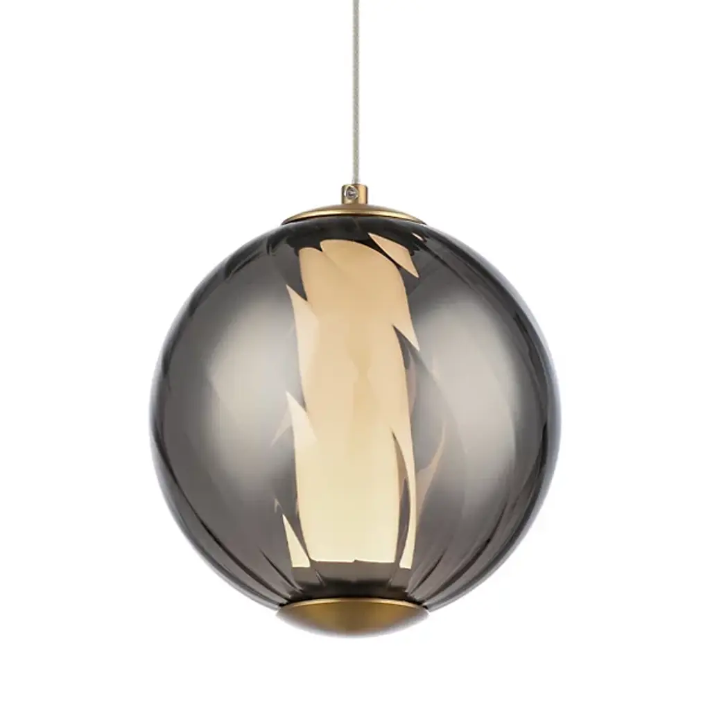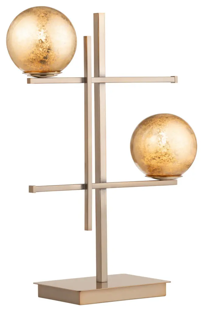 The Jennings Accent Lamp combines transitional style with modern artistry. Its geometric metal framework in a brushed brass finish features intersecting vertical and horizontal bars, forming an open, sculptural design. Two horizontal bars hold spherical gold glass orbs with an antiqued finish, adding a warm, diffused glow that mimics aged metal. The blend of linear metal forms and rounded orbs creates a striking visual balance, ideal for contemporary decor. Equipped with an on/off line switch and a clear 6-ft cord for convenience