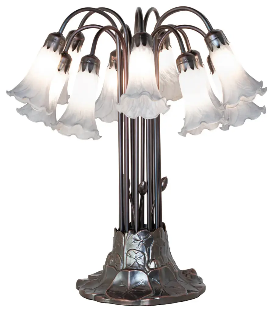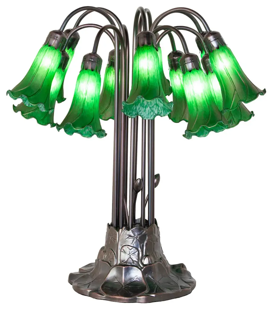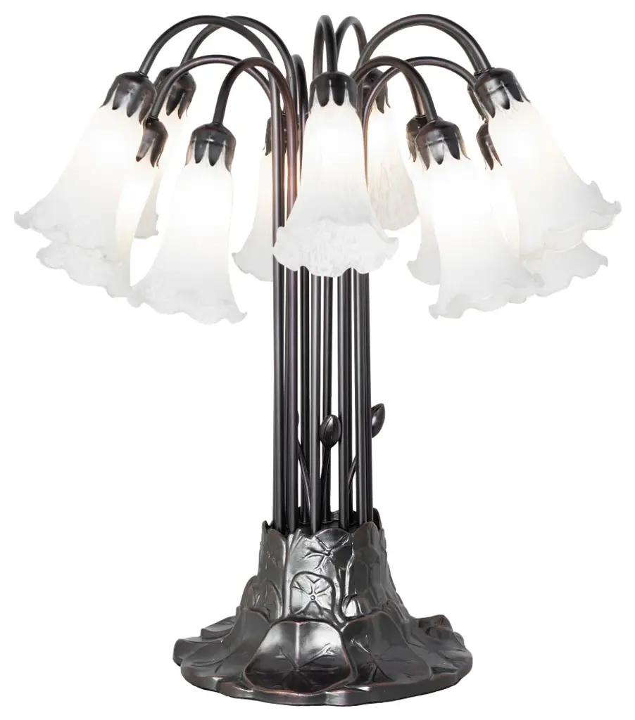 24" High Dark Amber Tiffany Pond Lily 12 Light Table Lamp