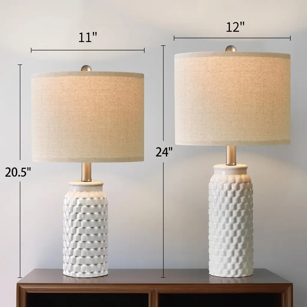 24" Modern Ceramic White Bedside Lamp Single Table Lamp Of 2 - 7.3"d X 13.39"w X 17.32"h - Beige - 7.3"d X 13.39"w X 17.32"h