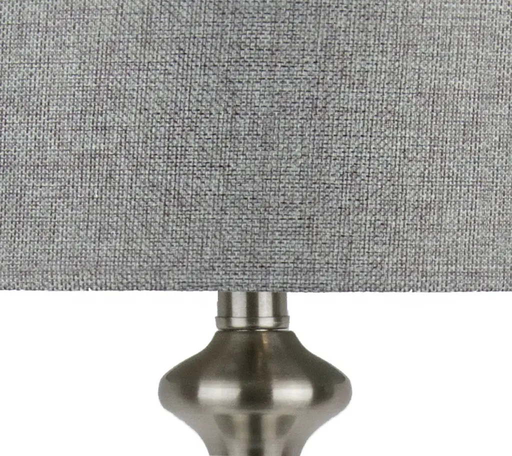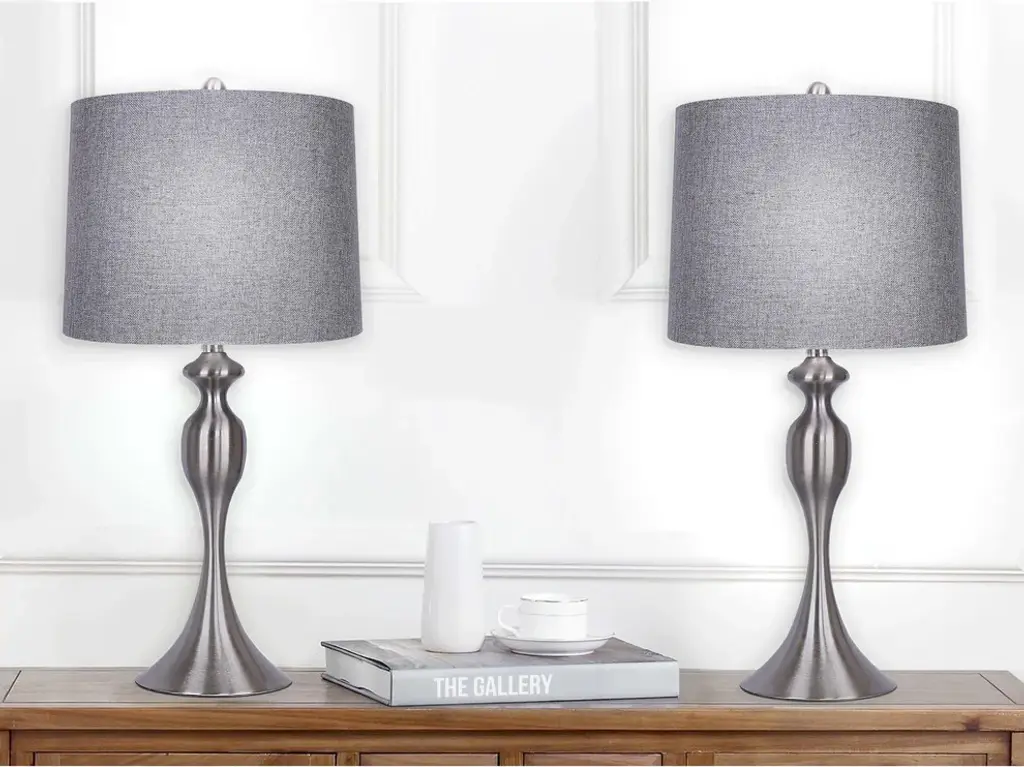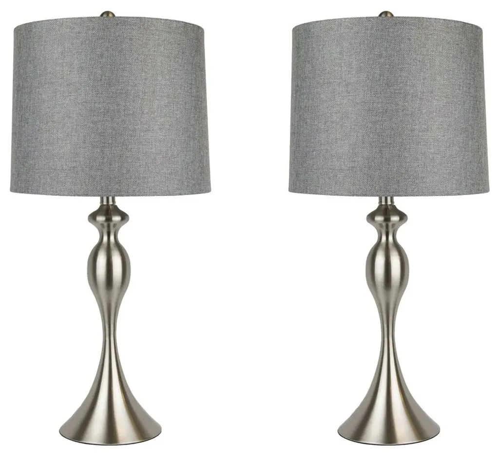 SET OF TWO This set of two table lamps with a gray lamp shade is the perfect addition to any space to provide additional light or just as a beautiful dcor elementLINEN SHADE AND BRUSHED NICKEL These 26.5 total height table lamps feature a gray lampshade with a curvaceous lamp body, finished in brushed nickel. They add the perfect finishing touch to any space.CLASSIC AND CONTEMPORARY The classic and contemporary design elements ensure these lamps perfectly complement any style or type of dcorFOR BEDSIDE AND MORE This pair of lamps is perfect for setting on bedside tables, dressers, front entry tables or any space that youre looking to add some wow too!HIGH-QUALITY AND DURABLE These table lamps are the highest quality, durable and sure to last the test of time. Youll be enjoying additional light and a beautiful dcor touch for years to come