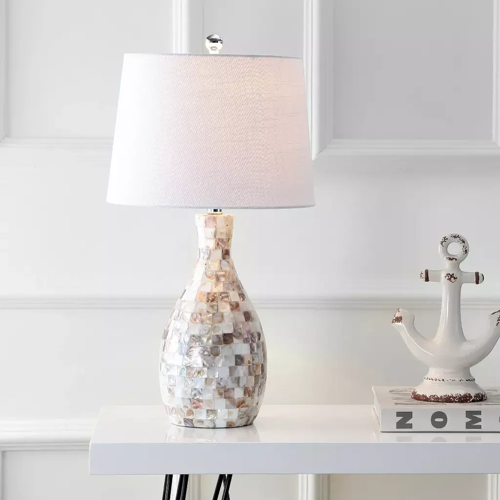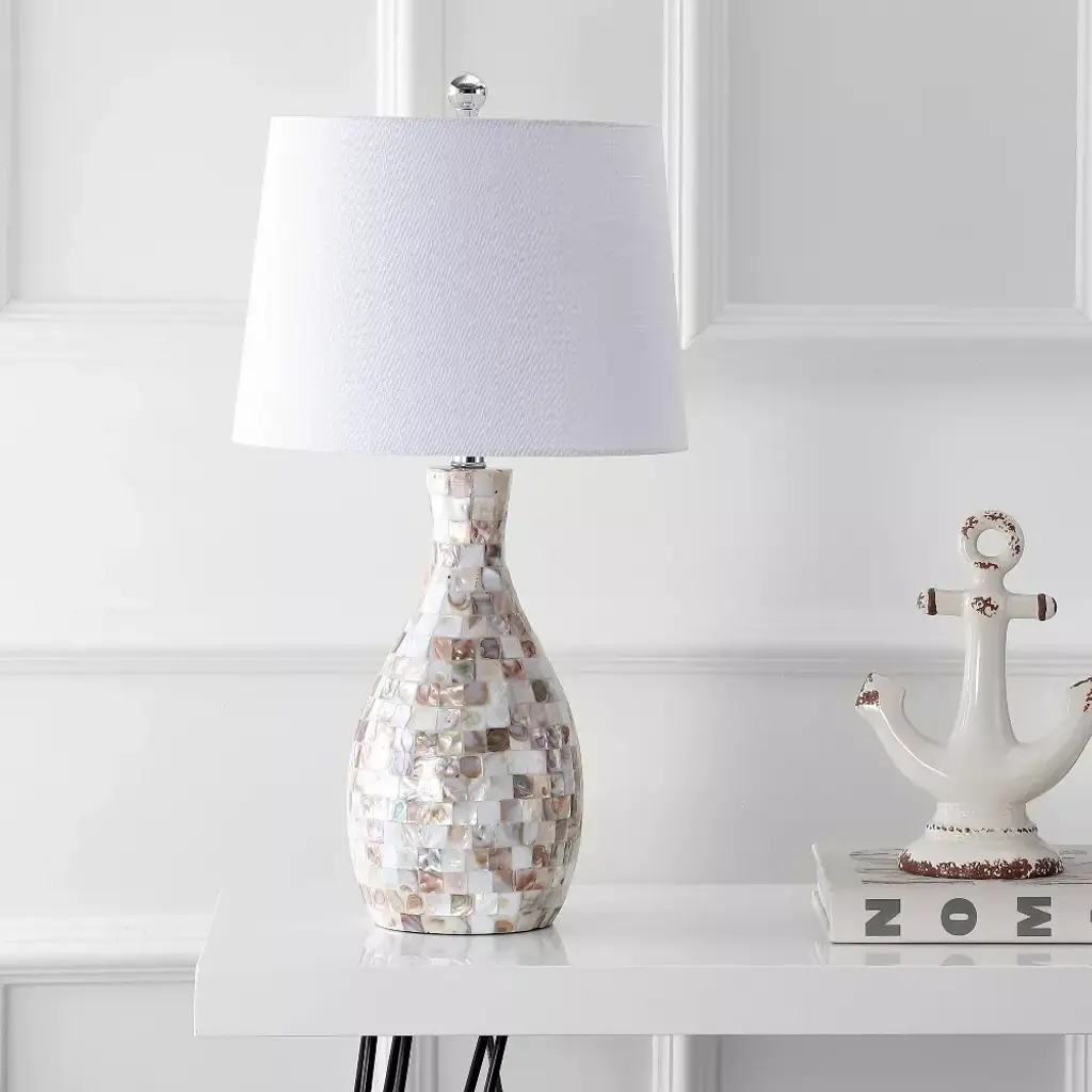 26.5" Verna Seashell Table Lamp With Linen Shade For Living Room (Includes Led Light Bulb) - Jonathan Y