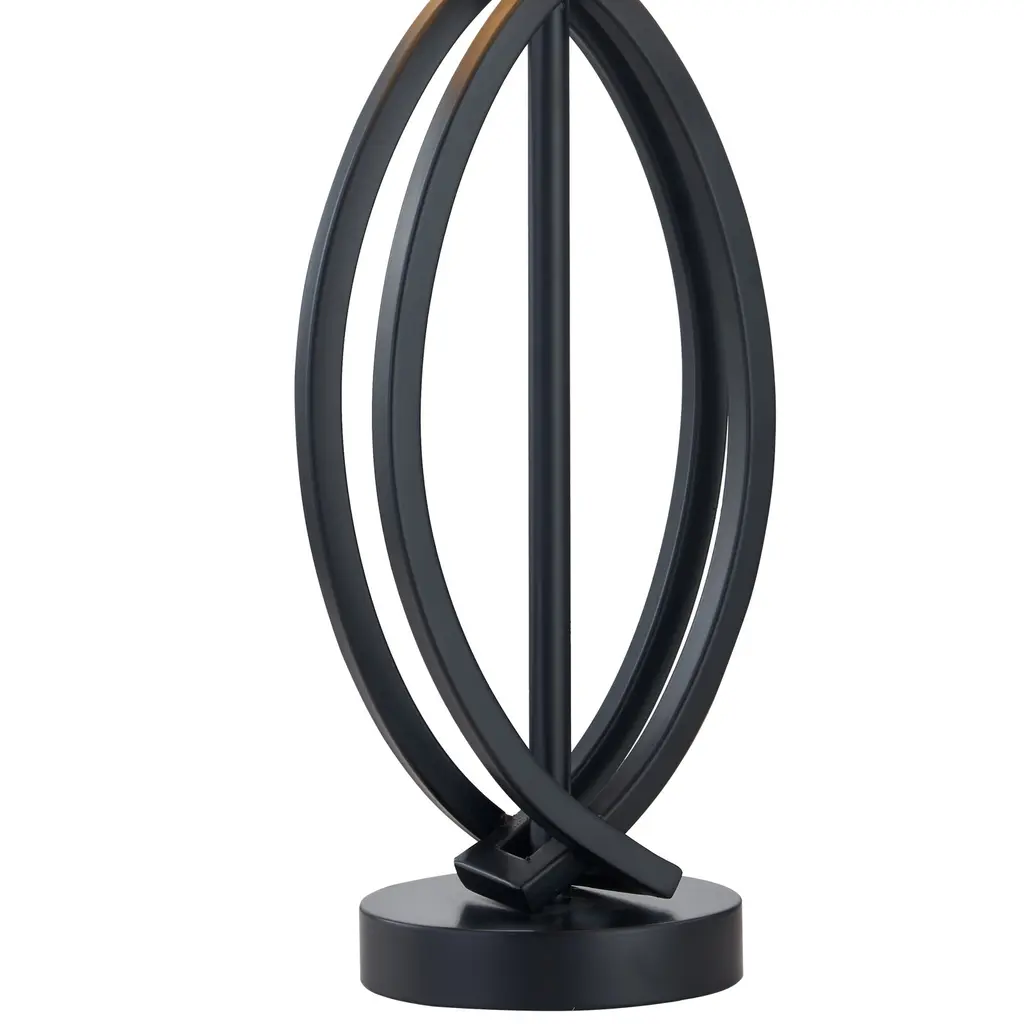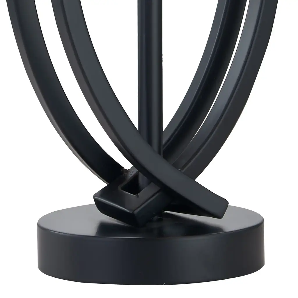 Brighten your bedside or buffet table with this 2-piece set of accent lamps. They're crafted from wrought iron, and each lamp features a geometric base of interlocking arc shapes. White drum-shaped shades filter ambient light from their 60W bulbs (sold separately), and a round finial tops off each lamp with a gleaming finishing touch. We love that these table lamps are compatible with LED bulbs for an eco-friendly upgrade. Plus, they have rotary socket switches for ease of use. Feature: