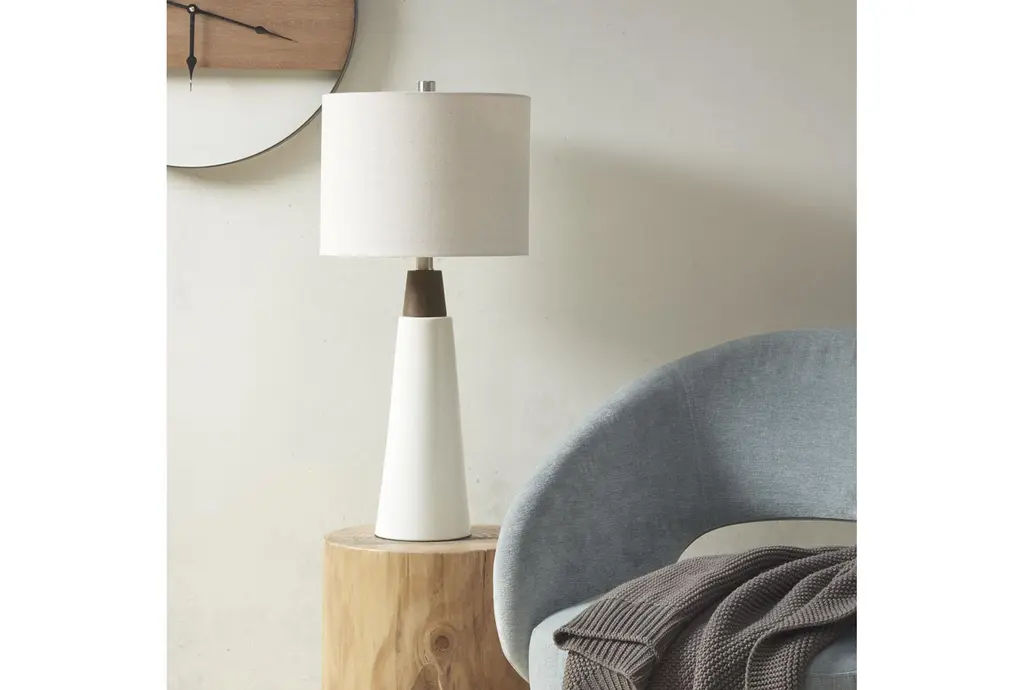 26 Inch Natural Wood Cylinder Table Lamp With Ivory Shade
