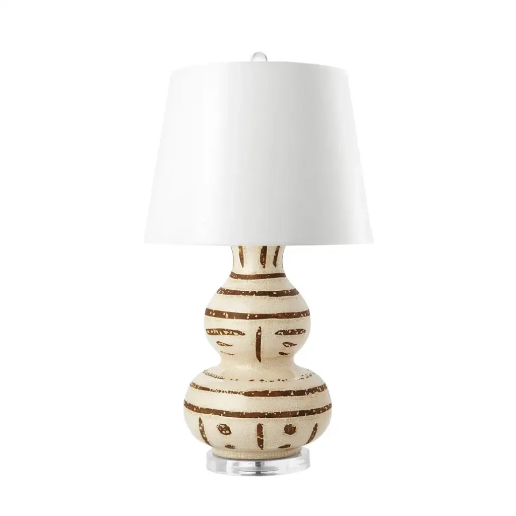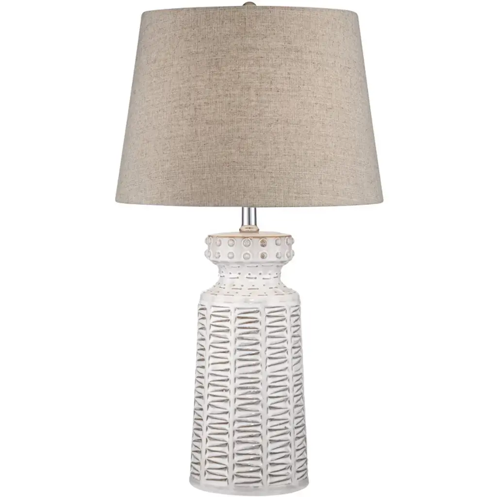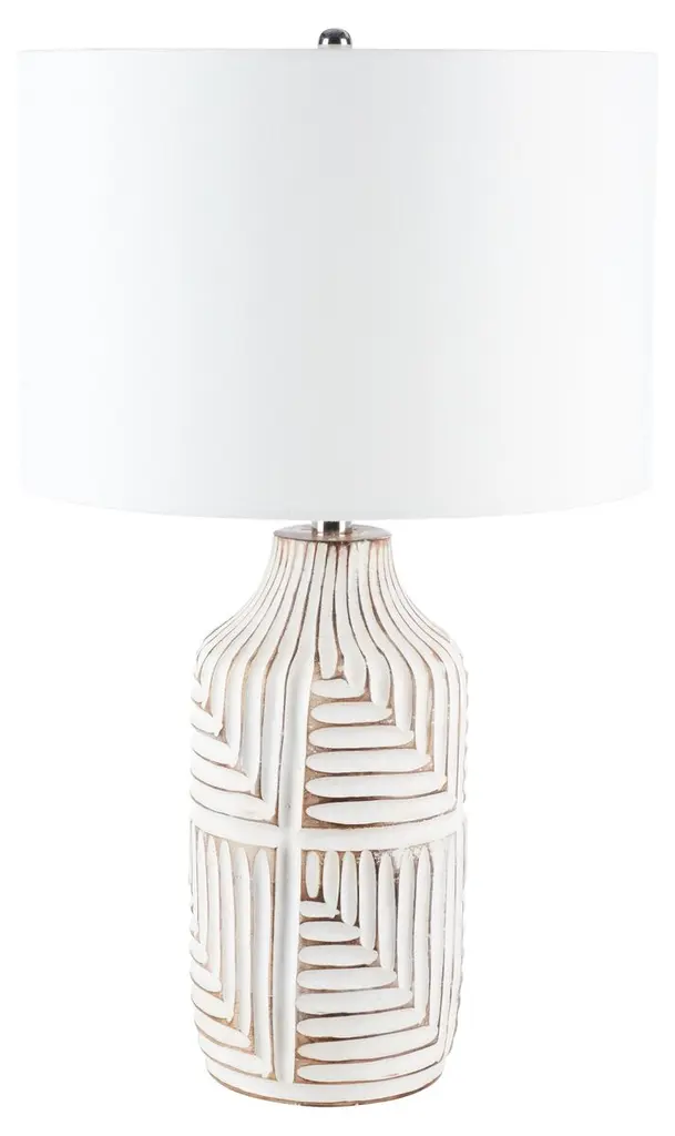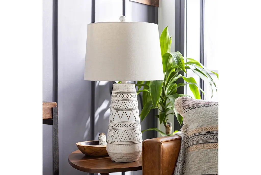 26 Inch White + Natural Boho Southwest Pattern Table Lamp By Surya