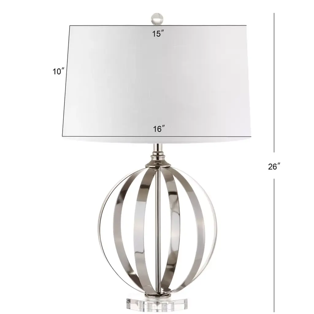Decorated with a polished nickel orb as a centerpiece, this accent table lamp adds a distinct style element to any vignette. The silver finish refreshes the design with a modern edge, while the crystal base beckons to timeless elegance. A linen drum shade puts the finishing touches on this attractive design.