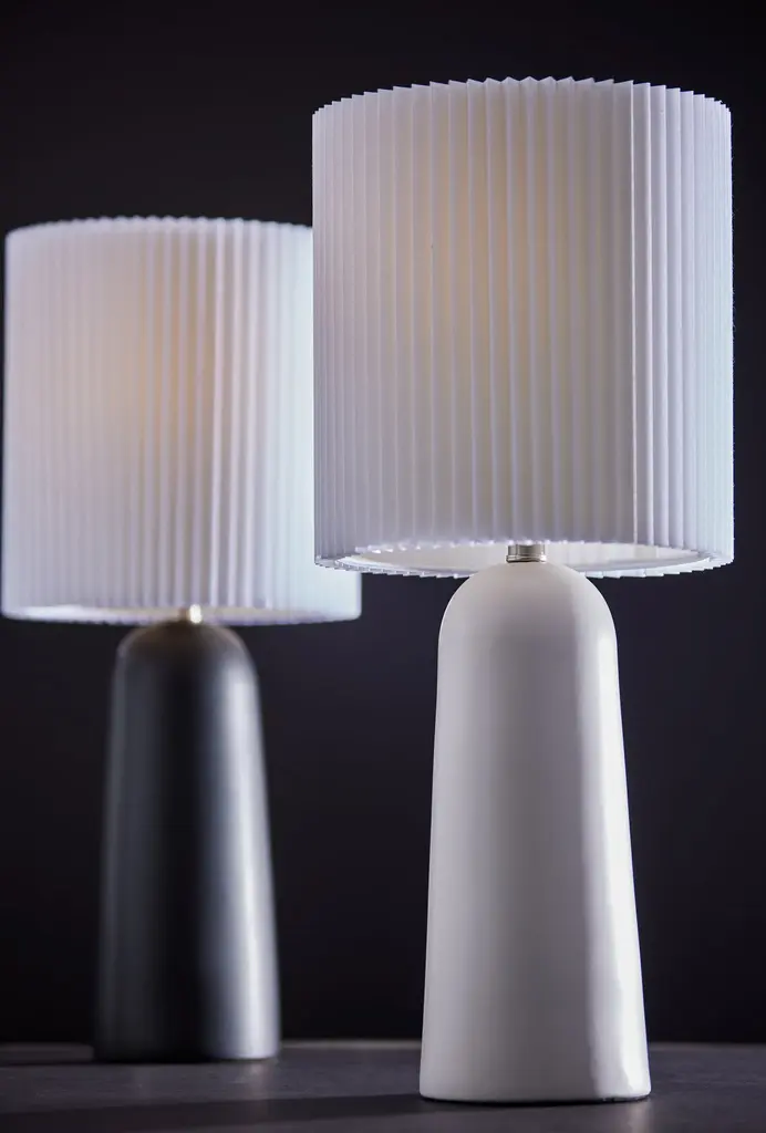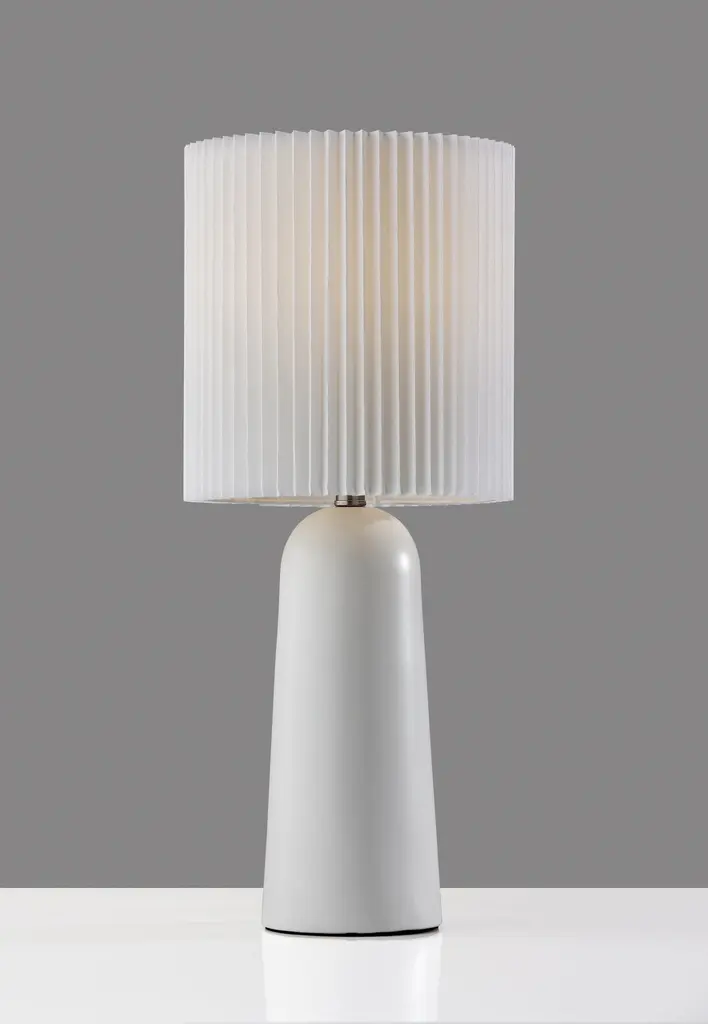 26" White Ceramic Cylinder Table Lamp With White Pleated Shade