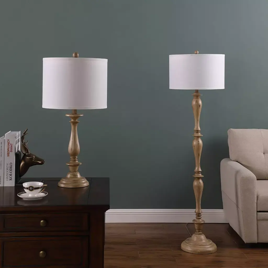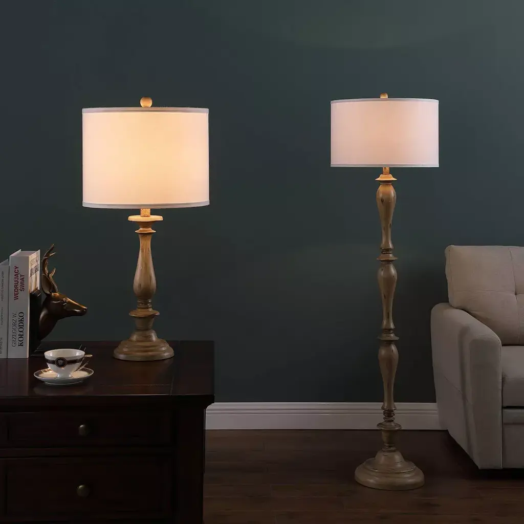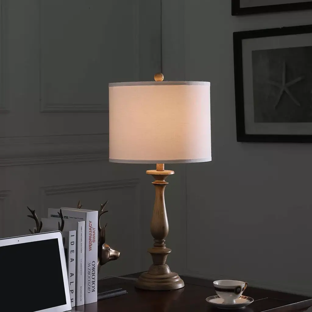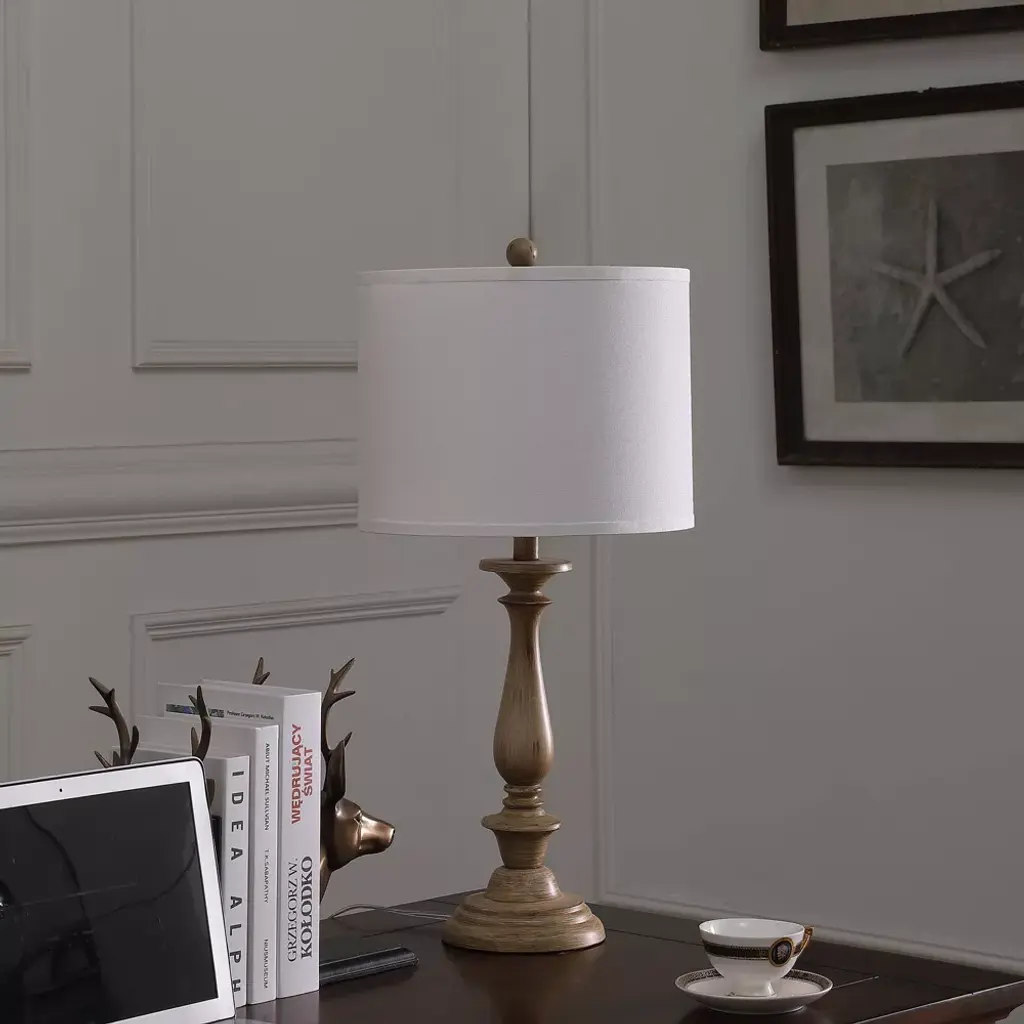 Embrace a relaxed, rustic aesthetic with this lovely antique cream candlestick table lamp. From the round base to the cotton/linen drum shade, you'll love the shapes and light tones of this country-cottage column table lamp. This striking rustic candlestick table lamp is just the boost your living area seeks. A mix of delicate shapes and curves combine with rustic weathered tones, Column support gracefully incorporates circulars, teardrops, and ovals in a lovely rustic antique cream finish over polyresin construction. Its country-cottage look is perfectly accented with a linen softback drum shade for excellent illumination in a bedroom or home office. This lamp will bring a cozy appeal to any transitional or rustic style home.