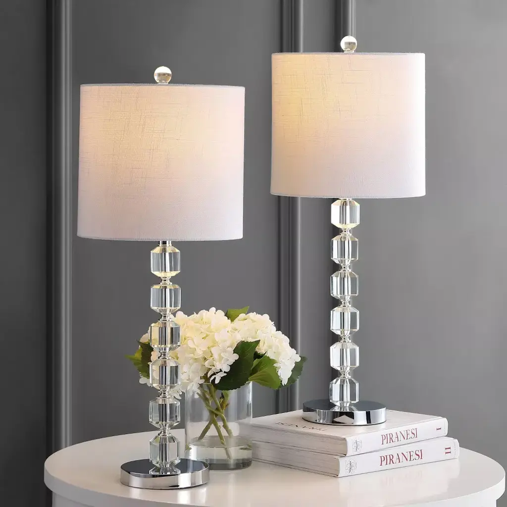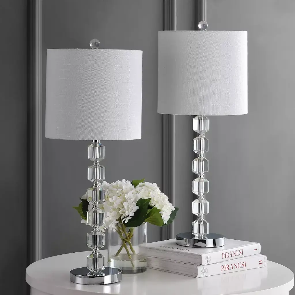 27.5" Crystal/metal Stacked Table Lamp With Silk-wrapped Cord - Jonathan Y: Ul Listed, Modern Style