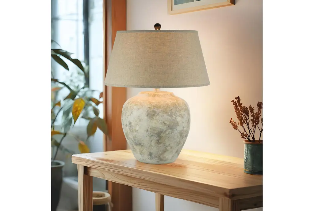 Enhance your living space with the 27.5 Inch Beige Hydrocal Table Lamp. Designed in a casual style, this oval-shaped lamp features a beautiful alabaster beige finish that complements any room. Perfect for your bedroom or living room, it adds a touch of rustic charm to your home decor.