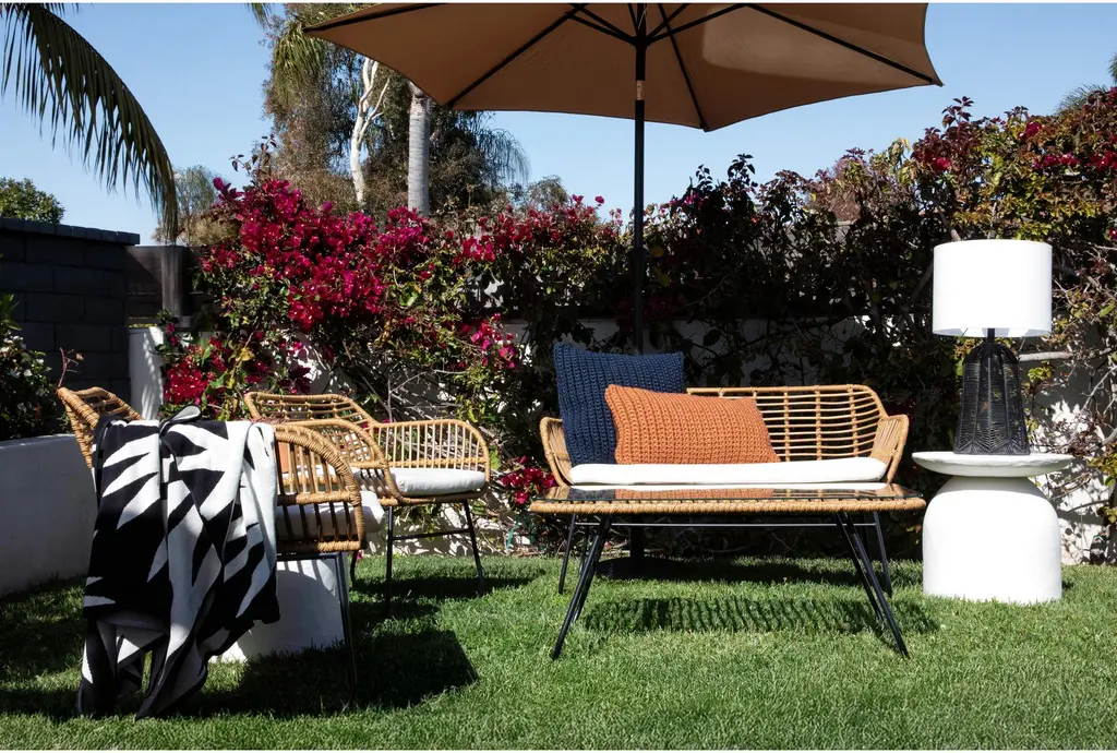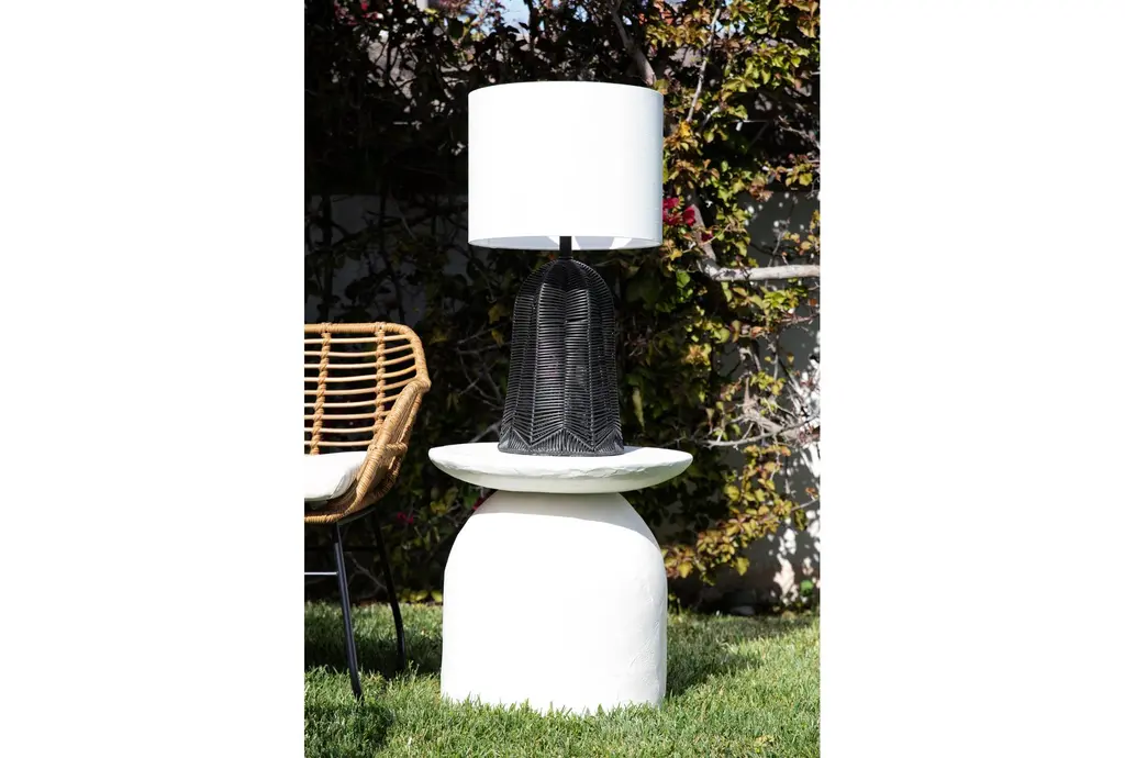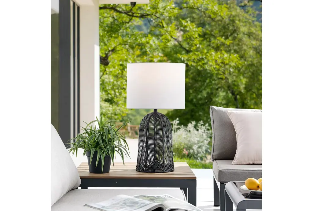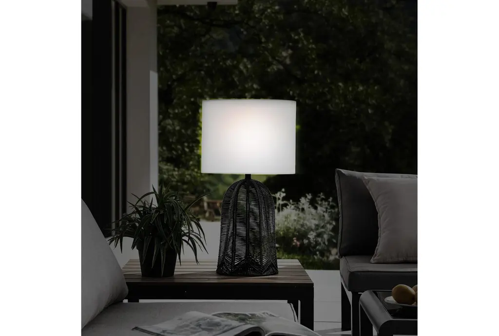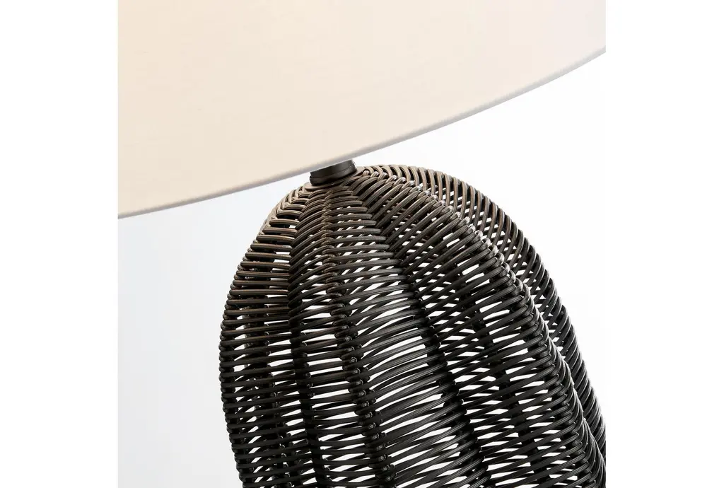 Enhance your outdoor space with the 27" Black Rattan Cordless Outdoor Table Lamp. This modern lamp features a rechargeable LED bulb, making it both stylish and functional. The black rattan design adds a contemporary touch, while the durable plastic construction ensures longevity.