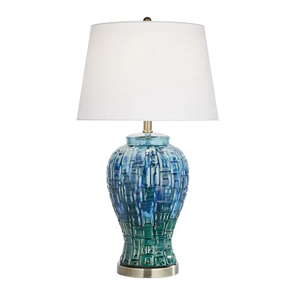 27" Blue-Green Teal Temple Jar Ceramic Table Lamp - 15" X 27" - 15" X 27" - Blue