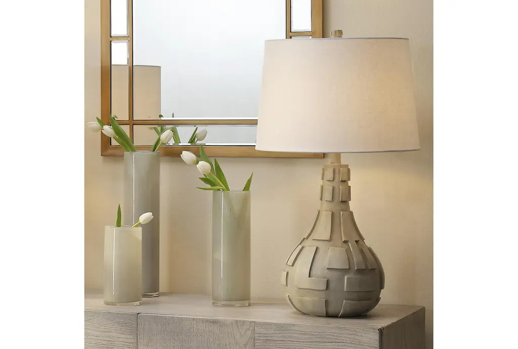 This elegant 27 inch grey Reslin table lamp is a stunning addition to any kitchen. Made from high-quality ceramic, it exudes sophistication and style.