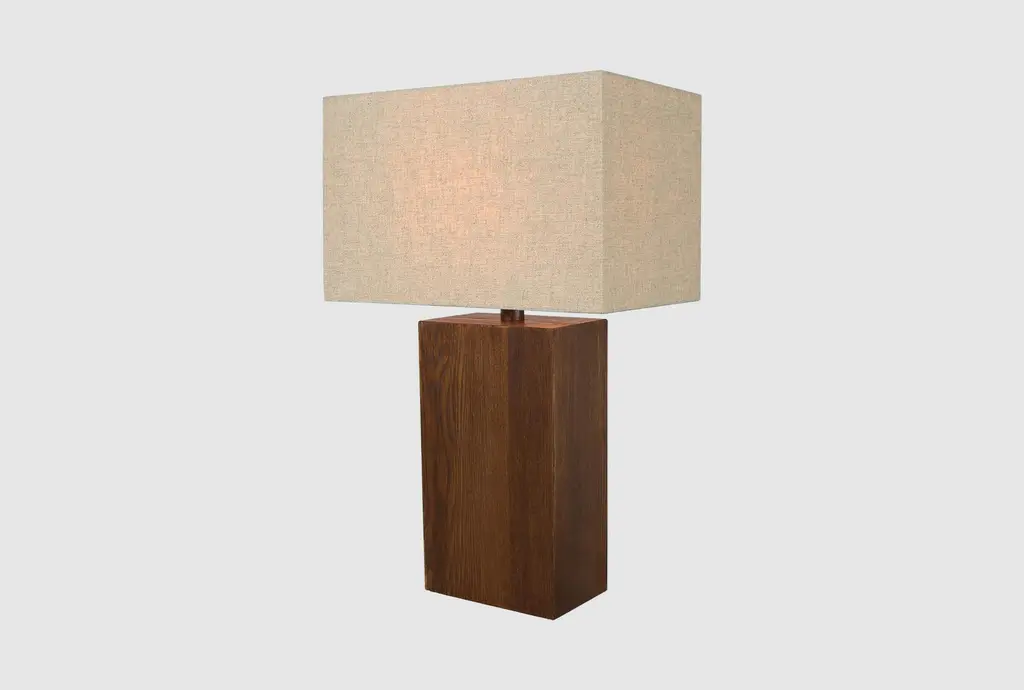 Timber Brown 27" Oak Wood Rectangle Block Table Lamp