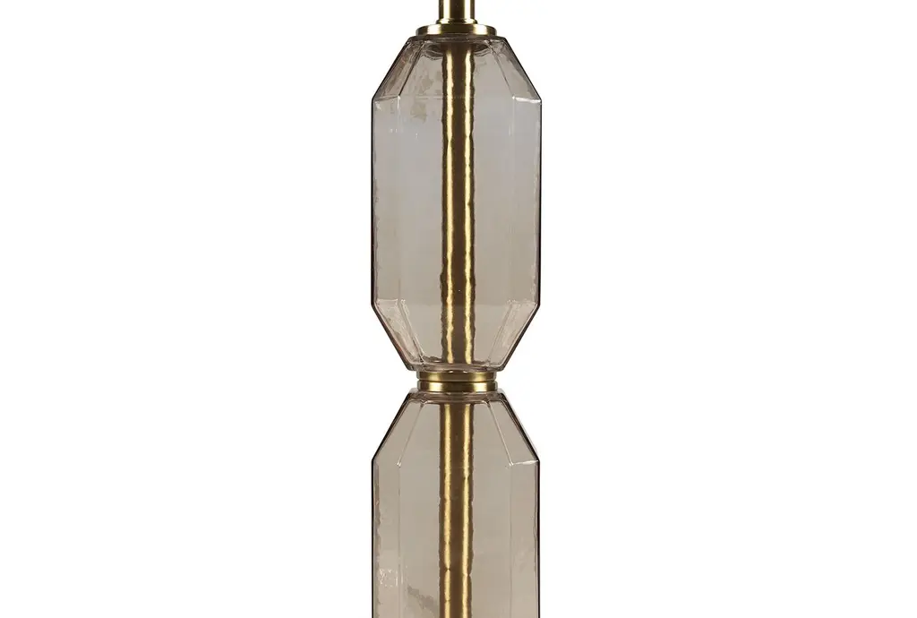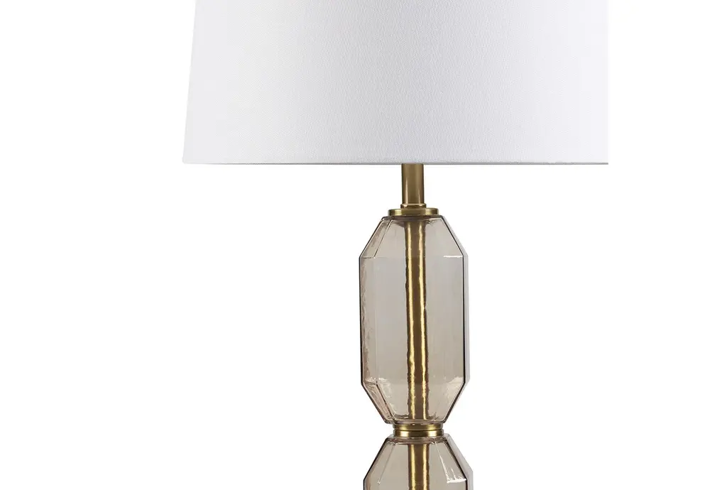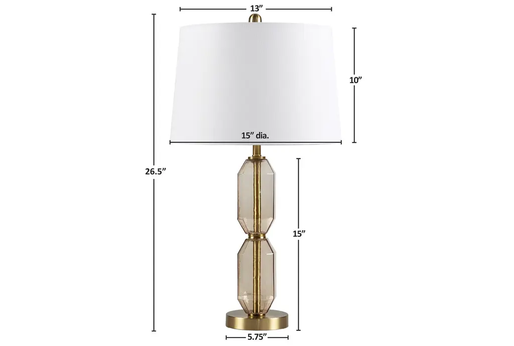 The 27" Zirconia Brown Glass Table Lamp is a stylish and functional addition to any room. Its elegant brown glass base is complemented by a sophisticated gold finish, creating a timeless look. The lamp also features LED lights, providing energy-efficient illumination.