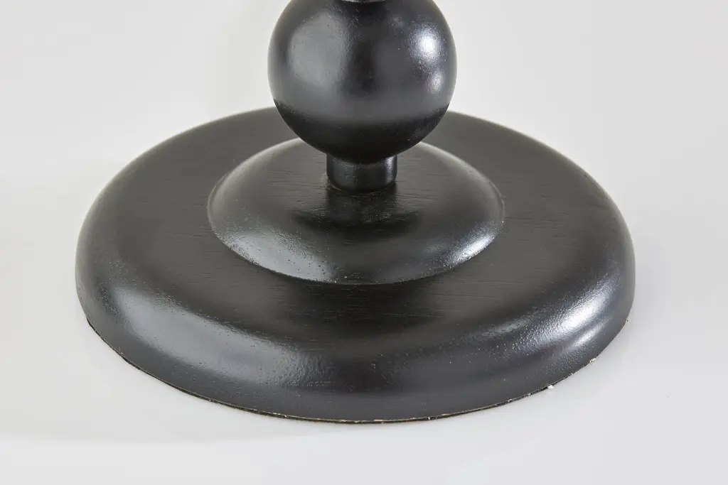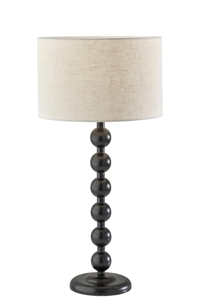 Add a touch of modern style to your bedroom with the 28" Black Rubberwood Stacked Orb Table Lamp. This lamp features a unique ball stem design that brings a timeless and minimalistic look to any space. Perfect for small spaces, it serves as an ideal bedside or nightstand lamp.