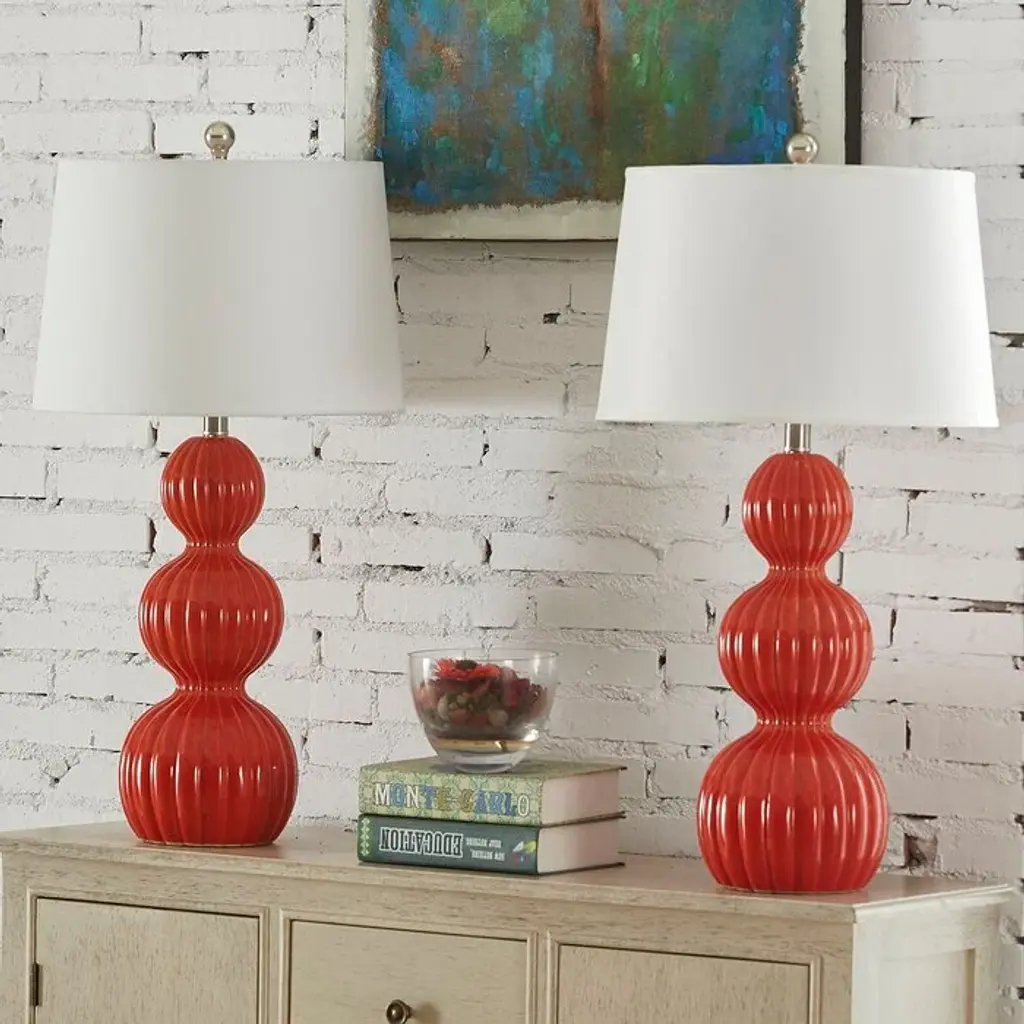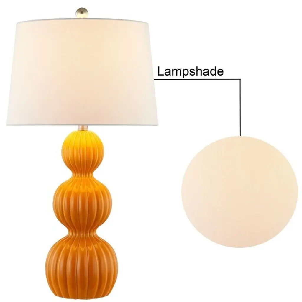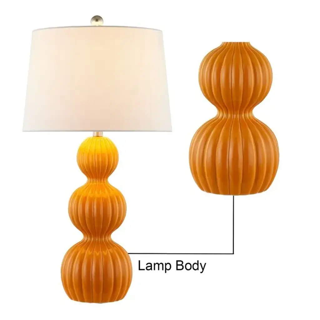 This 2-piece table lamp set brings textural design and a boost of brightness to your living room or bedroom. Each piece showcases a gourd-shaped ceramic base with a bright and glossy finish of your choice for a modern and artful look in your space. These lamps are capped with a crisp white linen shade, and they emit ambient light all around your room from a single bulb up to 150W, which is sold separately. They measure 28" tall, so they're sure to make a statement. Plus, this set of lamps features a 3-way switch to adjust the lighting throughout the day. Features: