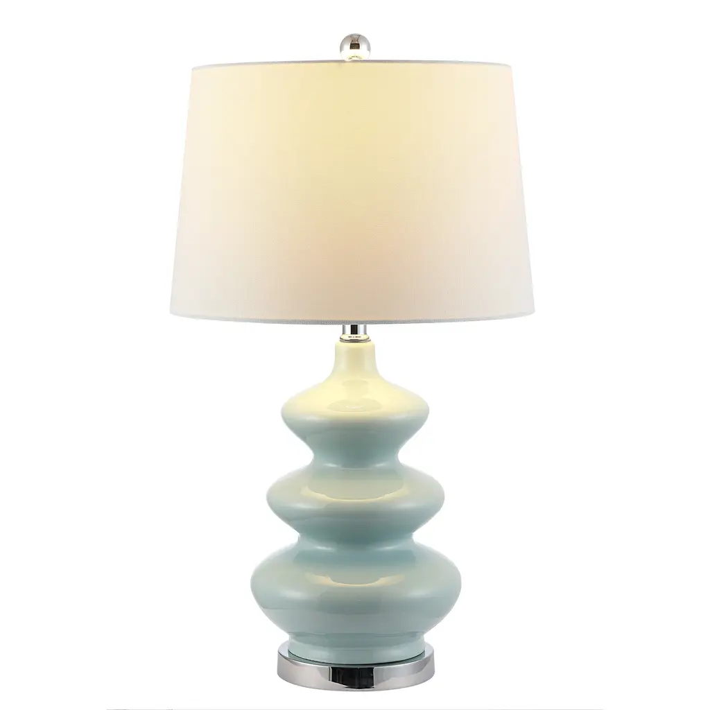 28" Glass Faye Table Lamp With Fluted Design & Linen Shade - Jonathan Y: Ideal For Nightstands Includes Led Bulb
