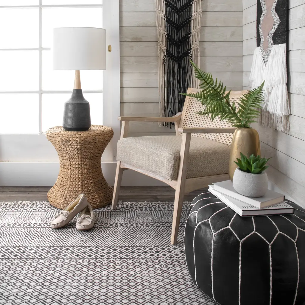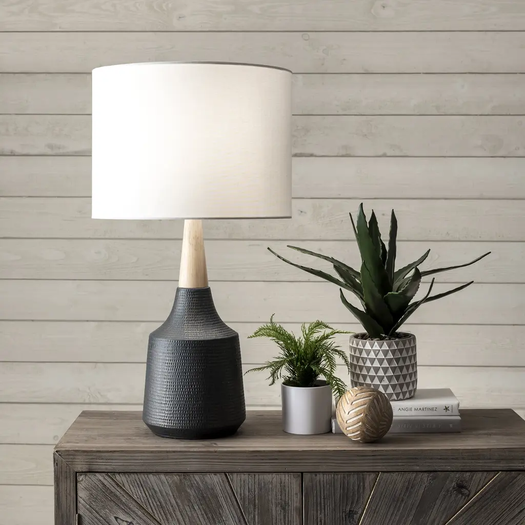 Warm and luminous, with a uniquely shaped base, this lamp will make a refreshing and stylish addition to your space. The playful silhouette diffuses the light beautifully for ample illumination, and the ceramic body provides a sturdy base. Designed with you in mind, Rugs USA provides an LED bulb, allowing your lighting to take center stage effortlessly.Dimensions Overall: 28" H x 15" W x 15" D Base: 17" H x 8" W x 8" D Shade: 11" H x 15" W x 15"D Cord: 6'