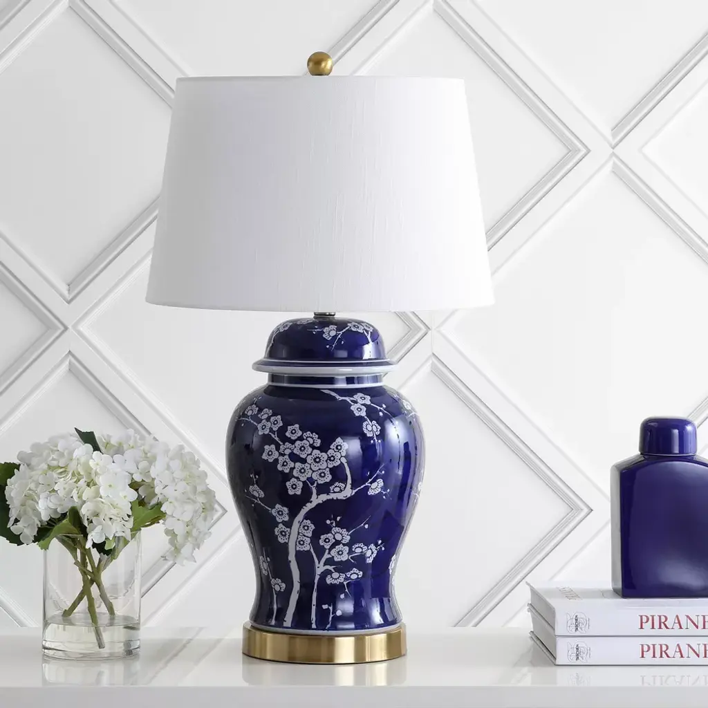 29.5" Ceramic Gracie Ginger Jar Table Lamp: Antiqued Brass, Cherry Blossom - Jonathan Y