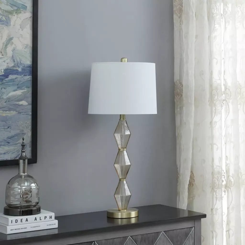 29.5" Emil Modern Geometric Glass Table Lamp Brushed Gold - Ore International: Ambient Light For Living Room, Piano