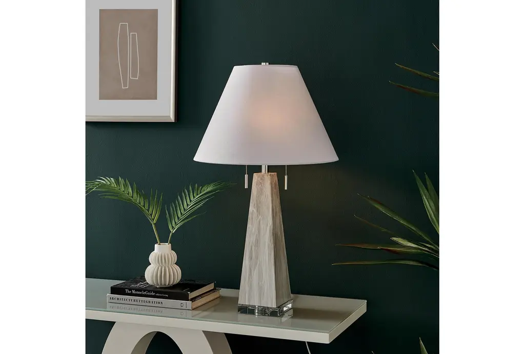 29" Faux Grey Marble Pyramid Table Lamp With Acrylic Base