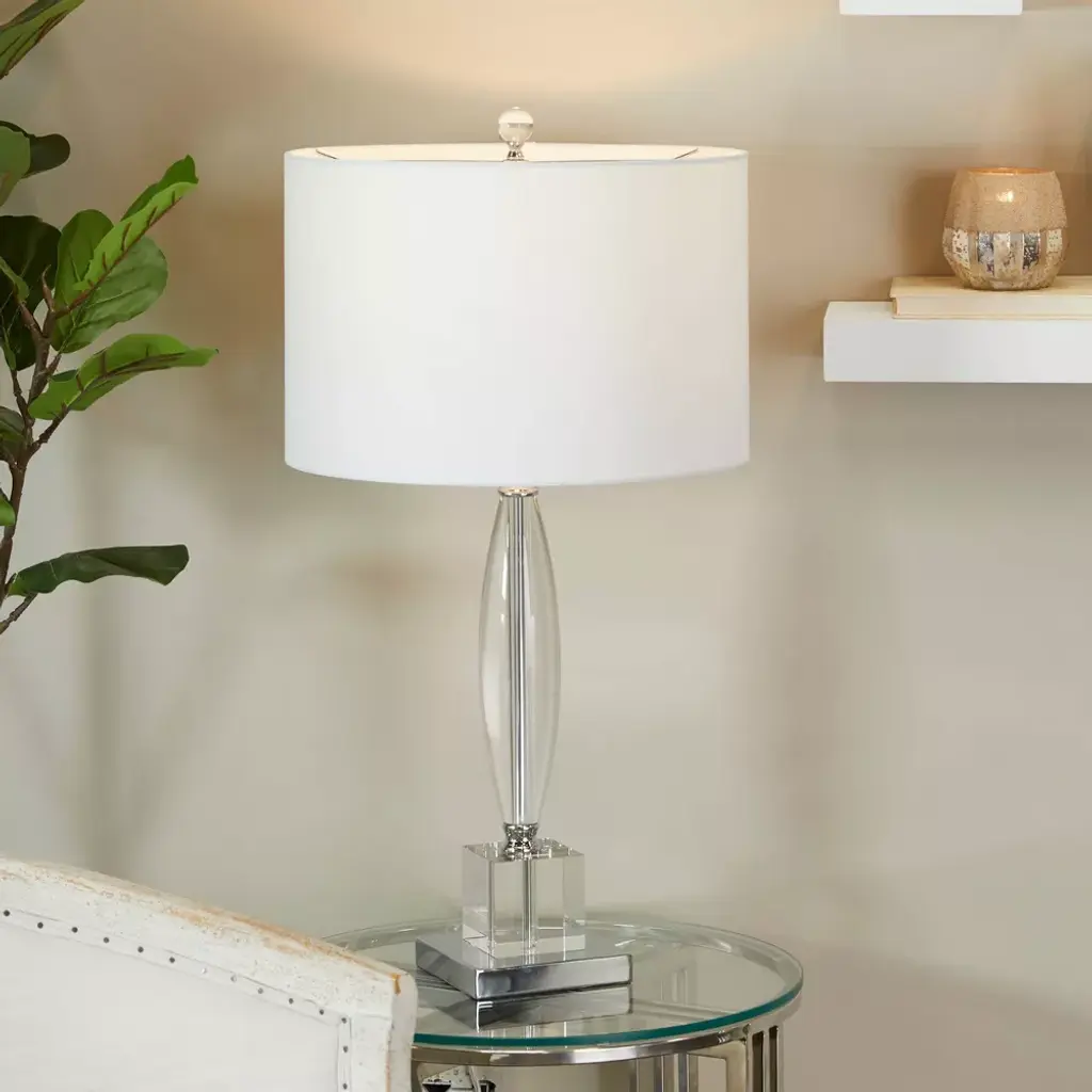 29" X 15" Crystal Transparent Base Table Lamp With Drum Shade Clear - Cosmoliving By Cosmopolitan: Indoor Glam Bedside, No Assembly Required