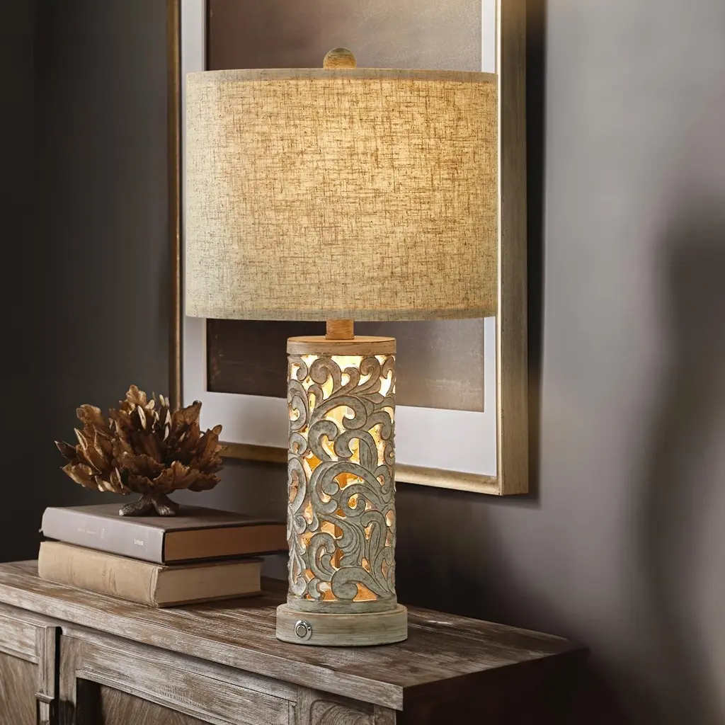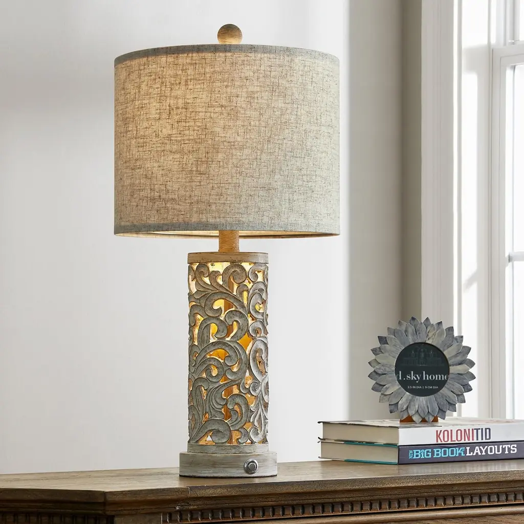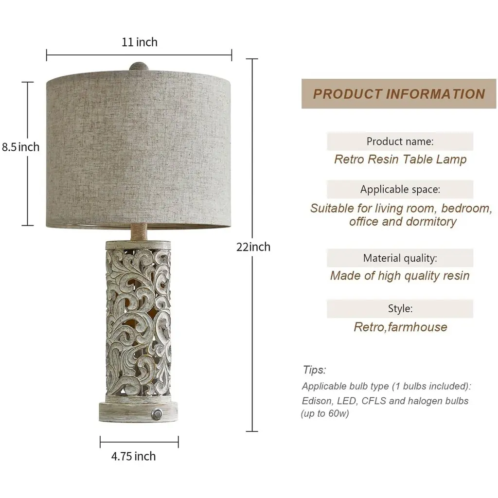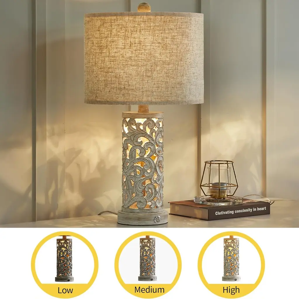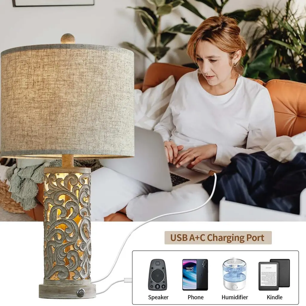 3-Way Dimmable Nightlight Table Lamp: The table lamps for bedrooms got main light is turned on and off with the touch control table lamp switch. The nightlight built-in sensitive sensors, you just need to tap touch control switch of the base to adjust 3 level brightness and turn it on/off. It is very convenient for your daily use, especially when you wake up in the middle night. Perfect for the nightstand, bedroom, and living room.Lamps With USB Ports: Our bedroom lamps convenient USB A+C charging ports, you can charge 2 electronics simultaneously, such as mobile phones, earphones, tablets, kindle readers and so on, charging port works whether the nightstand lamp is on or off. Moreover, whether you are sleeping or working, you can easily charge your electronic devices by touch lamp with usb charging port, super convenient for you and your family.Eye-Caring Farmhouse Table Lamps for Living room: The linen fabric lamp shade and the 3-way dimmable nightlight makes the glow softer so it can protect our eyes. Table lamp set is suitable for reading or working. I believe this pair of antique and unique table lamps will be the best gift for your family and friends!(Please note that the shade needs to be assembled)Energy-Saving Bulbs Touch Lamp: With the purpose of saving your time to look for compatible bulb, our table lamp for living room is compatible with LED light bulb. It helps you save at least 90% on electricity bills and can be your best energy-saving friends in your life. Bedside lamps - No flicker and no dazzling, effectively protect your eyes with smooth lighting.