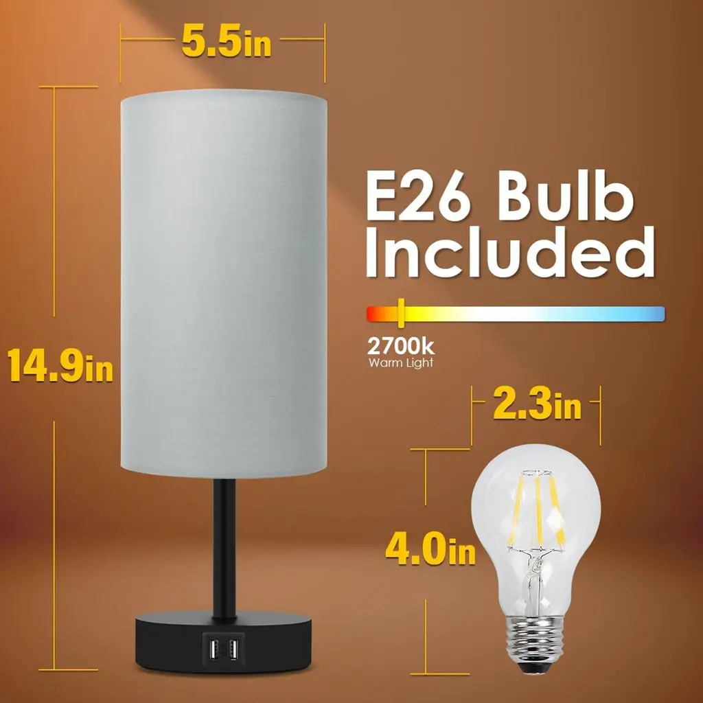 The dimmable bedside table lamp offers three levels of brightness options (low, medium, and high). Just simply tap anywhere on the metal base to adjust the lighting to meet your different needs. A nightlight for sound sleep or nursing. An accent lighting to create a cozy atmosphere. Enough comfortable brightness for studying or working. It’s super handy to operate.The USB Table Lamp features two built-in USB charging ports (5V/2.1A) that allow you to charge your mobile phones, kindles, headsets, diffuser, speakers, or other electronics while the lamp is on or off. It's perfect for those who need to charge their devices in their bedroom or office.This touch control dimmable table lamp is small in size and perfect for decorating anywhere in your house. The ideal USB table lamp for the living room, bedroom, study, children’s room, etc. With this addition, your living area or bedroom will feel a little cozy and toasty.Our small desk Lamp creates a pleasant and comforting feeling in the house when spending time with your family, as the linen fabric shade softens the light making it better for protecting your eyes.