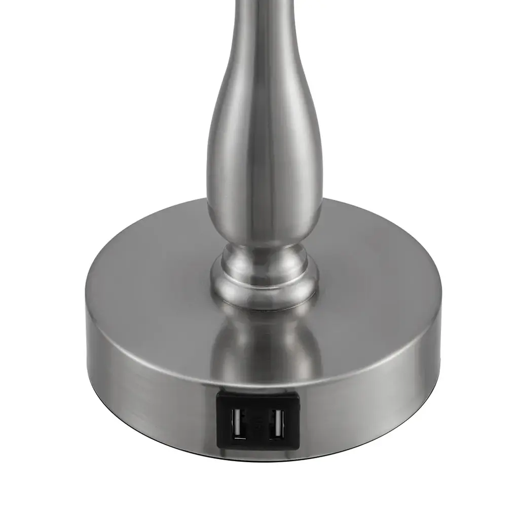 3-Way Dimmable Touch Control Small Table Lamp With 2 Usb Port, Brushed Steel - Small - Brushed Nickel
