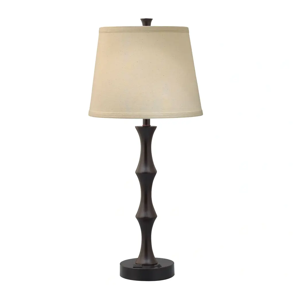 This is a contemporary table lamp that features a black/expresso Finish. It is constructed from wood and Finish:ed by hand. This sophisticated lamp is a sure conversation piece in any room!Specifications: