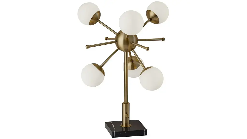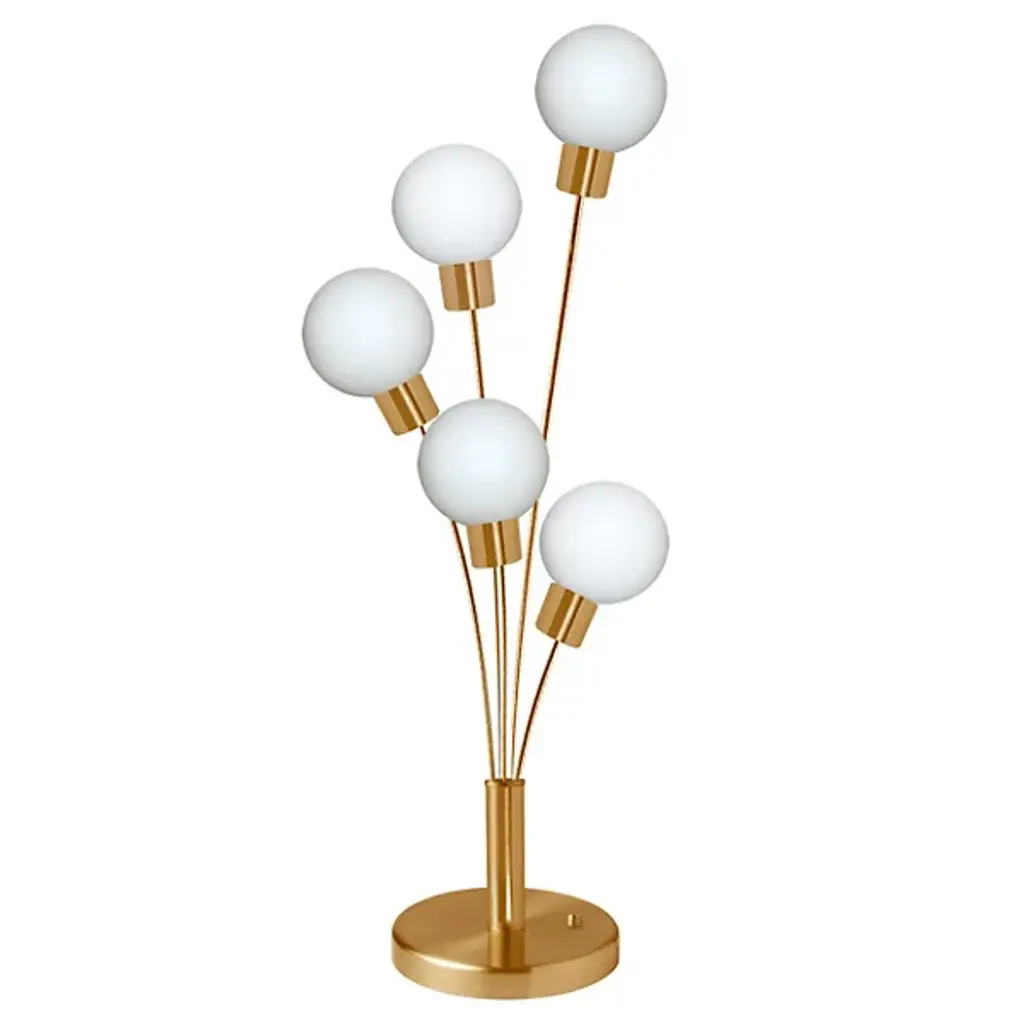 Blooming into its full luminous glory, the Dainolite 306T Table Lamp is a a sophisticated table lamp featuring 5 lamp shades in a globe orb modern style. Each glass shade jolts out from above, with its own individual stem in a staggering array of heights providing full coverage radiance on your modern desk or bedside nightstand. Its sturdy round base holds it firmly in place for long-lasting use. It comes in a variety of lamp shade and base finish combinations for you to choose from.Canopy/Back Plate Height: 1" Canopy/Back Plate Diameter: 7" Shade Height: 4" Shade Top Diameter: 4" Shade Bottom Diameter: 4"