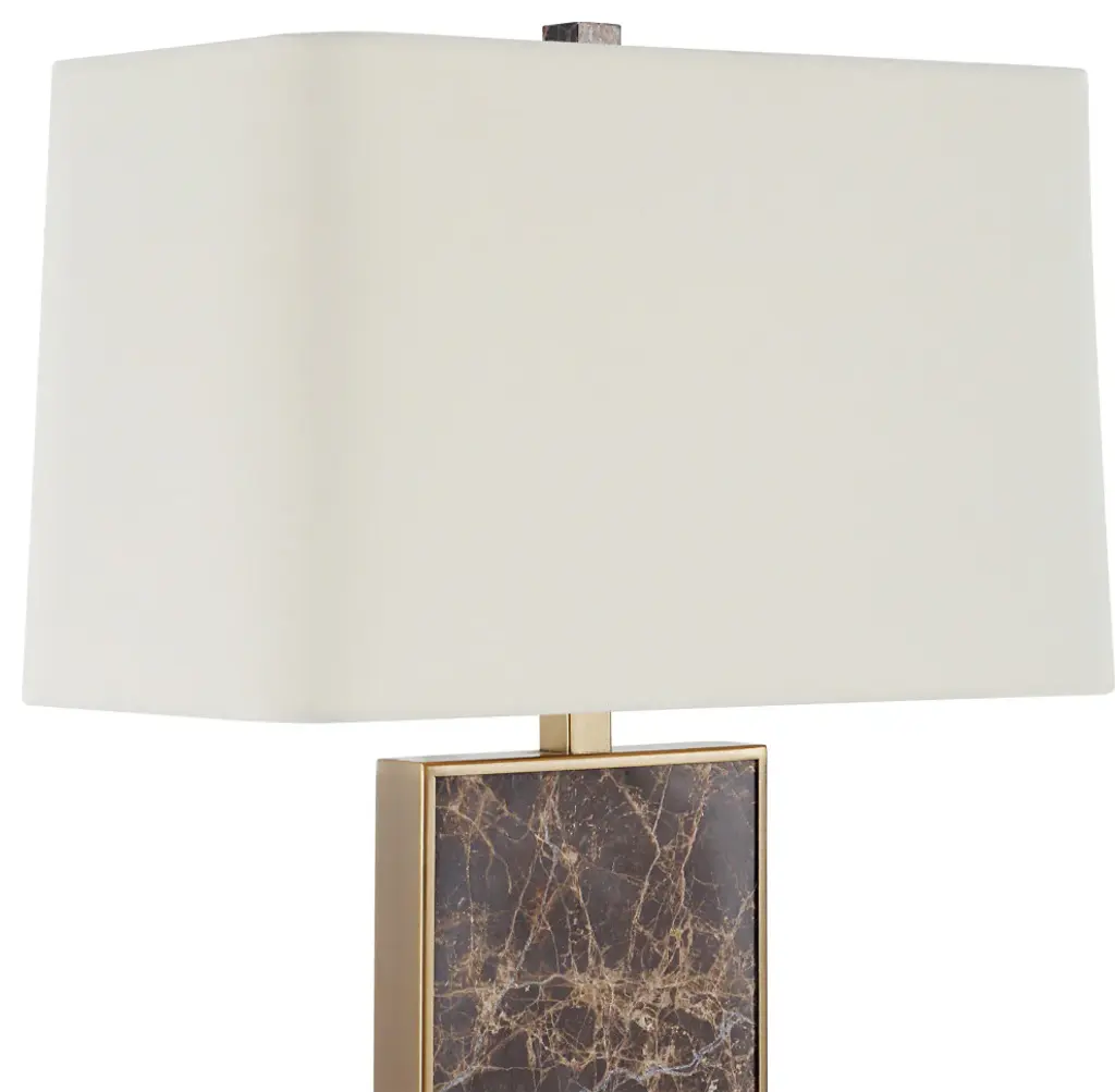 Truly a mix of design and functionality that doesn''t compromise on style, this 31-inch black and yellow metal bedside table lamp with white empire shade will be a great addition to your space. The base of this lamp is made of metal finished with a black and yellow brick design. Includes a white linen, empire shaped shade, making this a fashionable piece that will complement most any interior. 30.75-inch H x 13-inch W x 15-inch D