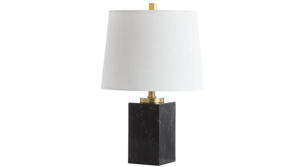 As royal as it gets, this table lamp's geometric base takes cues from modern design. The white marble option has a clean, universal look. The added iron detail offers a more luxe, glamorous look. Its soft glow is perfect for a nightstand or side table. Designed with you in mind, Rugs USA provides an LED bulb, allowing your lighting to take center stage effortlessly.Dimensions Overall: 31" H x 10" W x 10" D Base: 23" H x 4" W x 4" D Shade: 9" H x 10" W x 10" D Cord: 6'