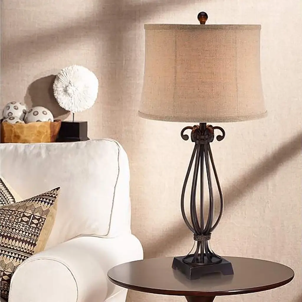 32" High Taos Scroll Metal Iron Table Lamp - 16" X 32" - 16" X 32" - Brown