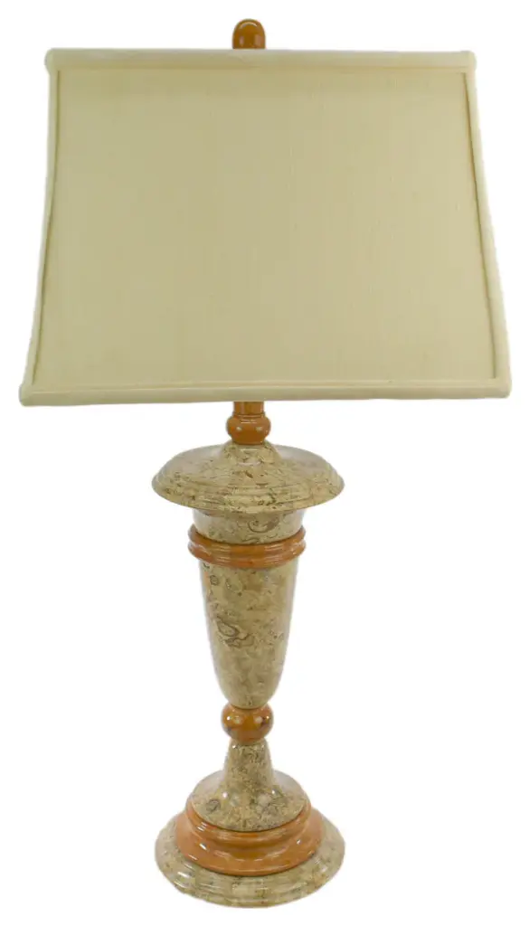 To style your entryway or side table with the Fossil and Caramel Marble Table Lamp, embrace its warm, elegant aesthetic. The beige and caramel marble base pairs beautifully with earthy tones, like wood accents or linen, while the tan drum shade adds a touch of softness. Enhance its traditional charm by placing it on a classic side table, perhaps featuring antique brass details. Introduce a touch of nature with fresh flowers or a potted plant to soften the marble''s presence. Consider adding a decorative tray or books on your side table to balance the lamp within the vignette. Finally, position the lamp where its warm glow, adjustable with the 3-way switch, can be best appreciated "“ creating a welcoming entryway or a cozy living room corner..• • Lamp shade not included • •