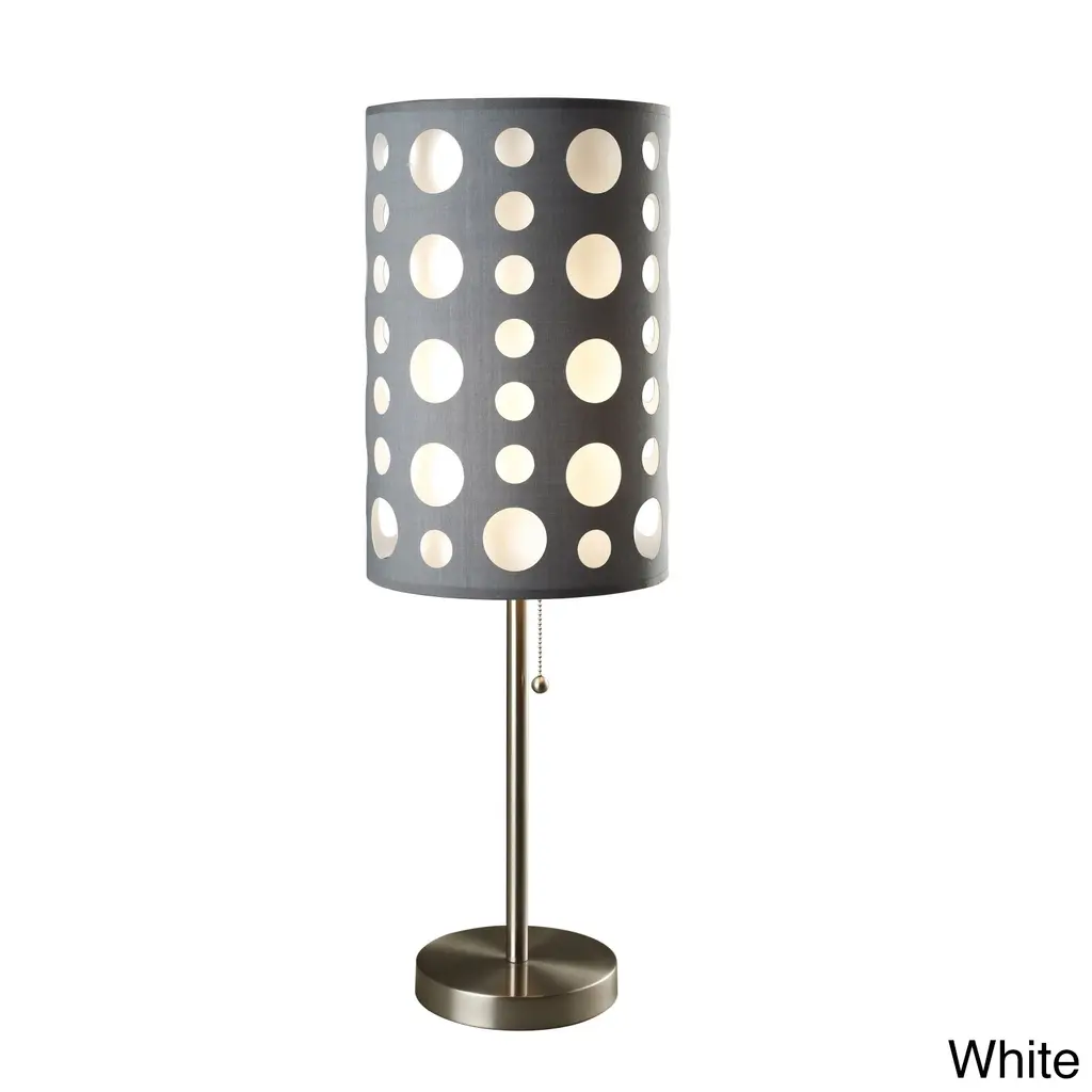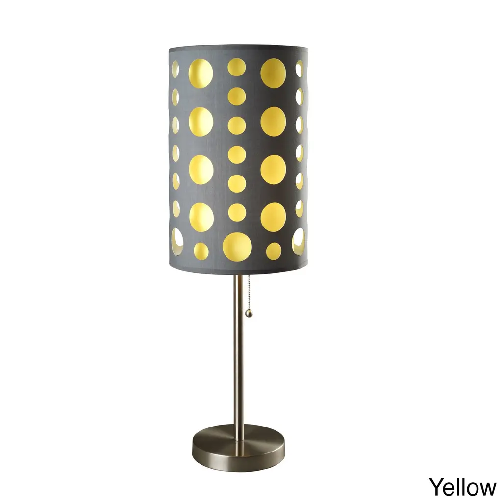 This contemporary and stylish table lamp will brighten up your room while adding a modern touch. A versatile two-layer shade finishes this lamp. Finish: Chrome Dimensions: 33 inches high x 16 inches wide x 16 inches long Shade dimensions: 10-inch diameter, 8-inch diameter Care instructions: Hand wash Pull-chain on-off switch, 100W type A bulb or 23W CLF bulb, max 120V