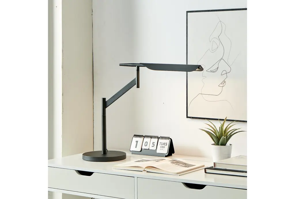33" Modern Black Flat Metal Shade Led Table Lamp