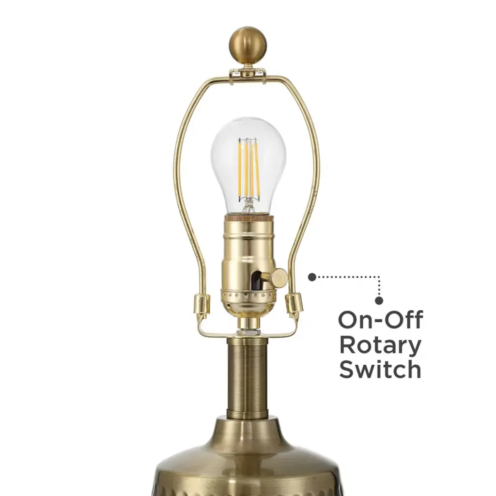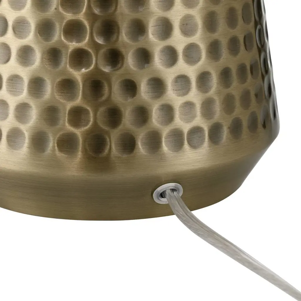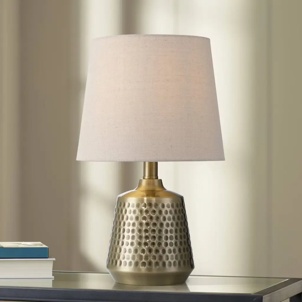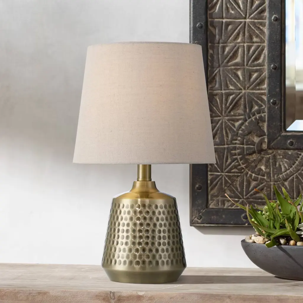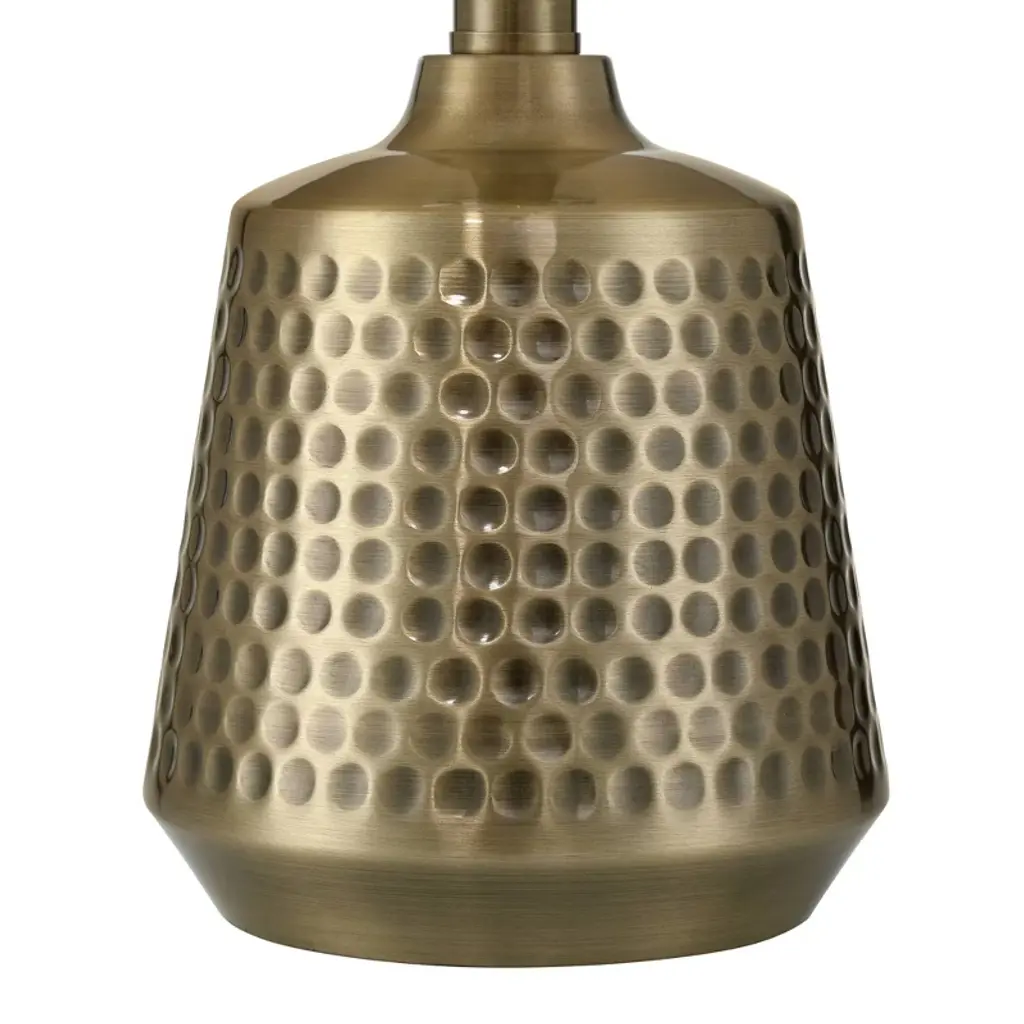 With design inspiration taken from classical metalworking skills, the Argus table lamp from the 360 Lighting brand is a hallmark of transitional design. Fitting into a variety of home and living space styles, this lamp features a textured brass finish metal base with a dimpled pattern for visual and physical interest. The natural linen shade provides an understated charm, diffusing illumination and keep your eye drawn to the artful base.