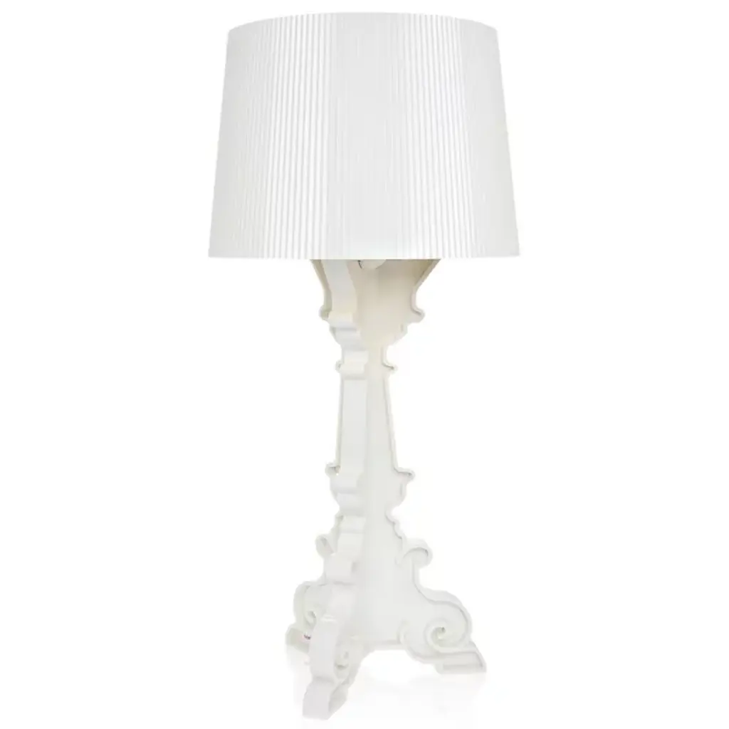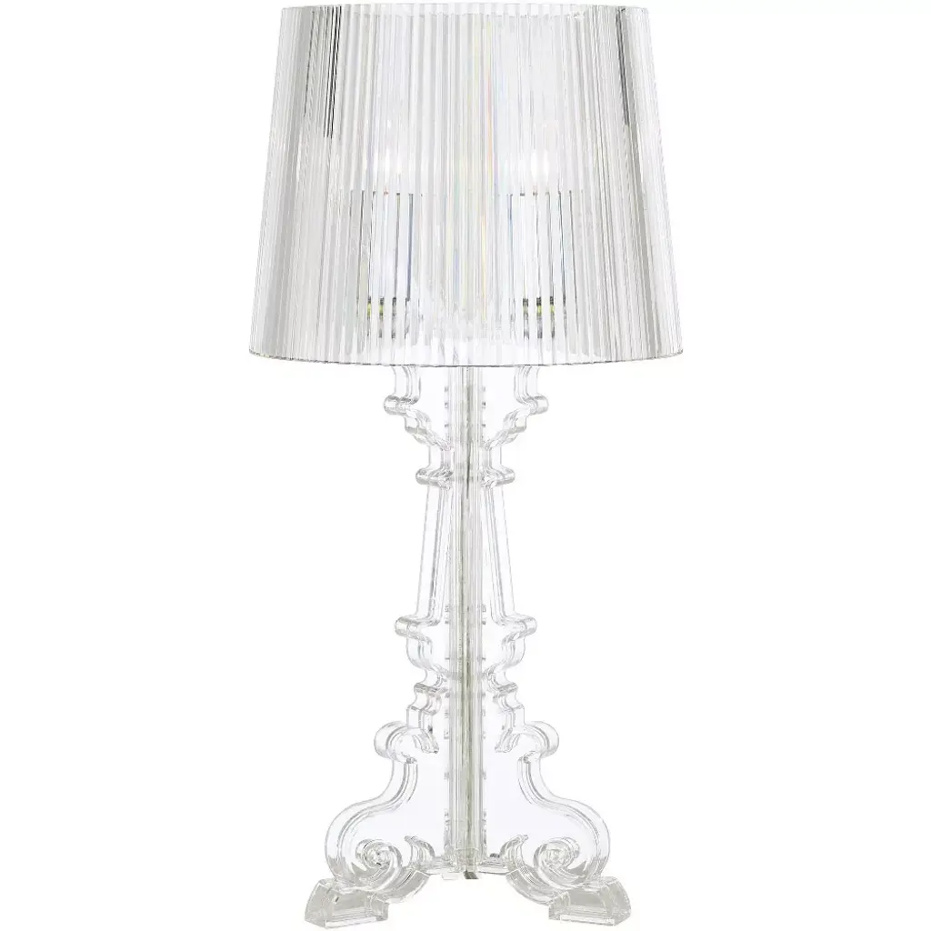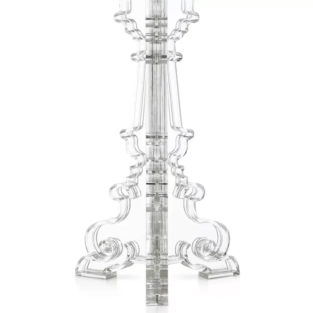 Add a dramatic splash to any room with this stunning set of two clear acrylic accent table lamps. The wonderfully complex base features a hint of ornate Baroque style. Both the base and shade are clear acrylic which catch the light beautifully. In-line switch offers accessible lighting control. Add a touch of stellar style and sparkling light effects to your decor.