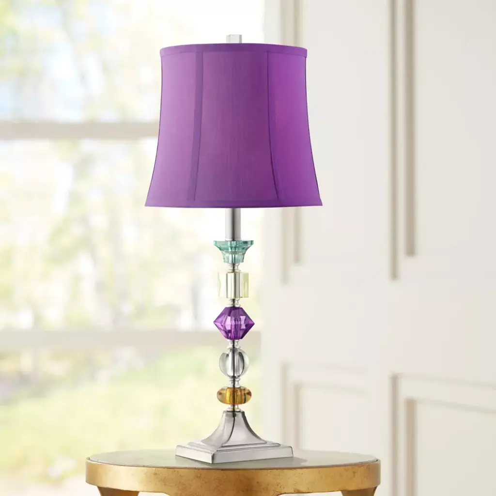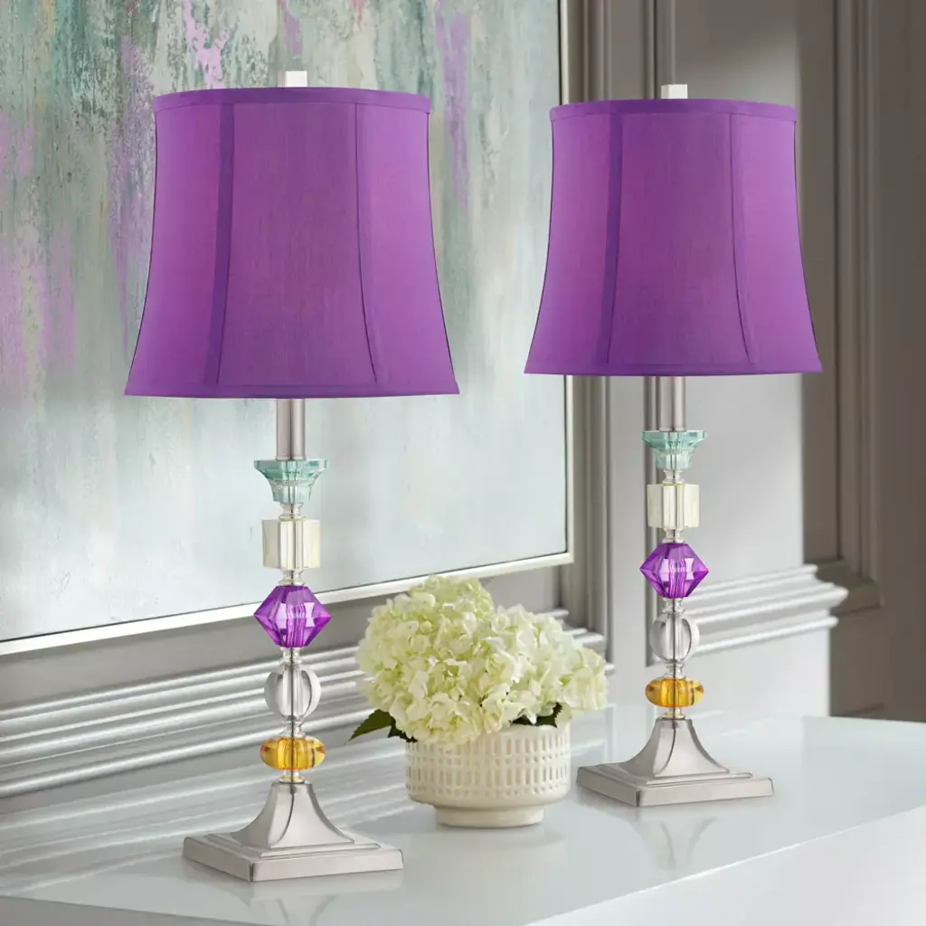 360 Lighting Bijoux Modern Table Lamps 25 1/2" High Set Of 2 Clear Stacked Gem Purple Bell Shade For Bedroom Living Room Bedside Nightstand Office