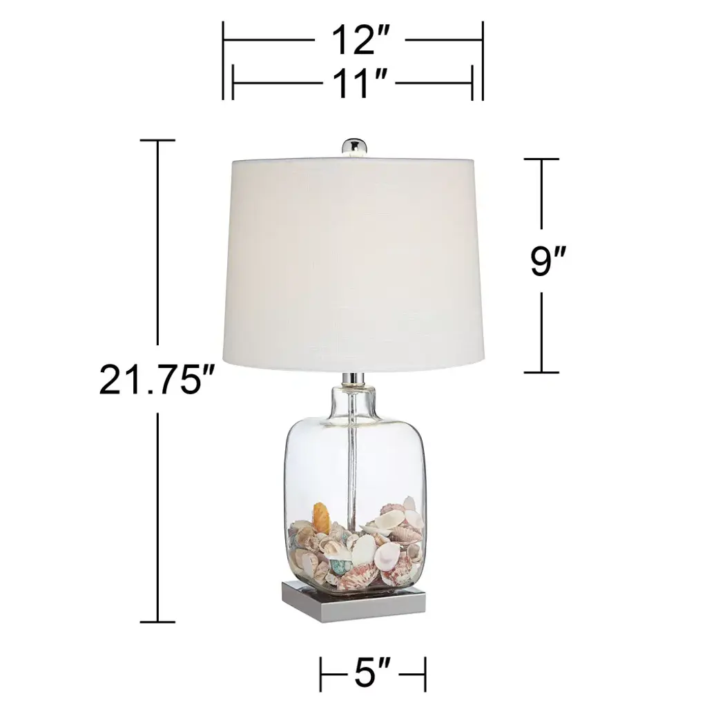360 Lighting Coastal Accent Table Lamps 21.75" High Set Of 2 Clear Glass Fillable Sea Shells White Drum Shade For Living Room Family Bedroom