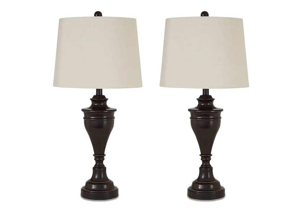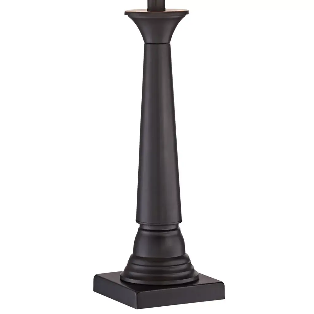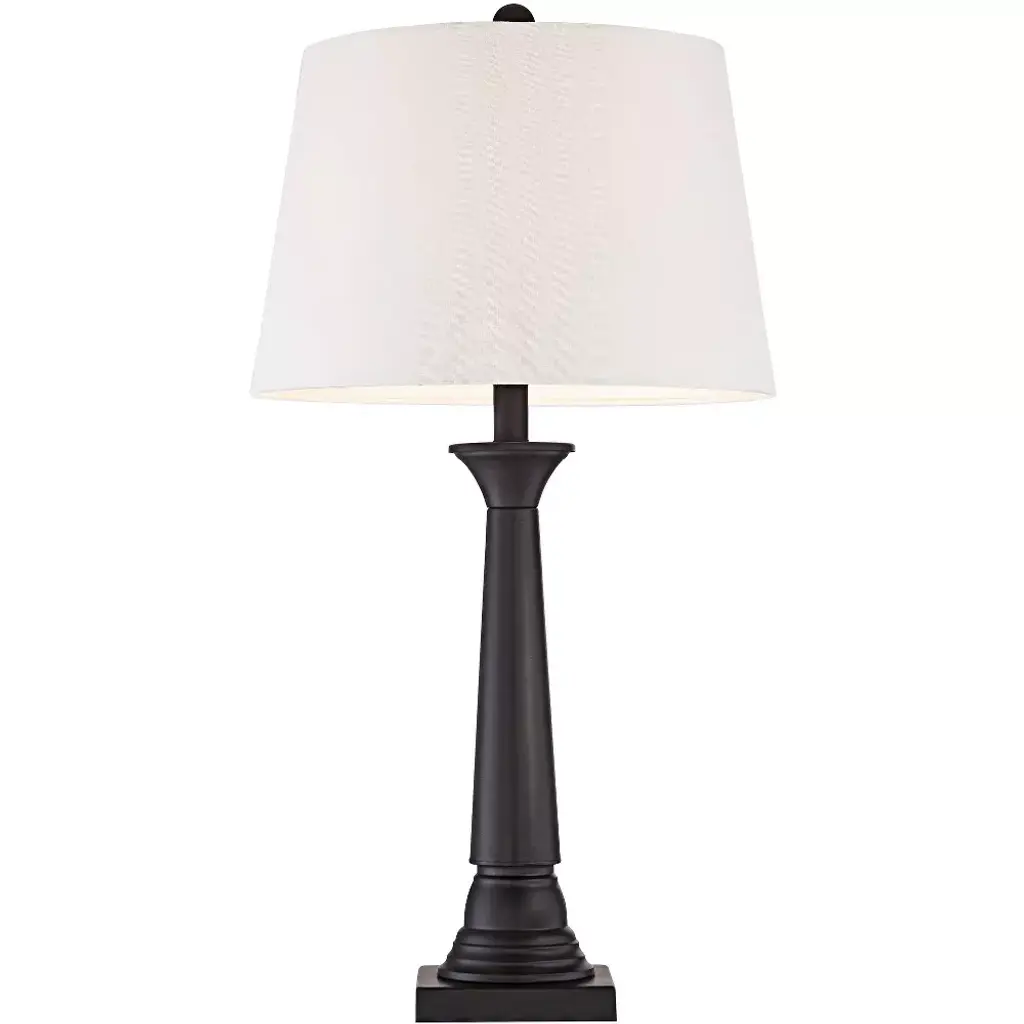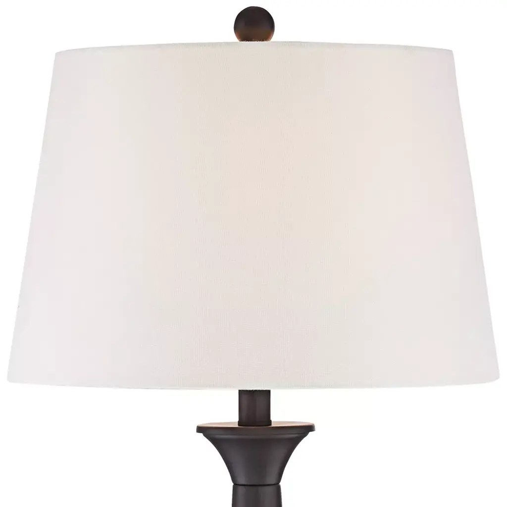 Clean and streamlined, this table lamp set comes from the 360 Lighting brand and was inspired by traditional lighting designs. The pair of lamps both feature a classic tapered column profile in a deep black bronze finish that matches the finial. Each is topped with white color fabric drum shades to complete the stylish appeal. Use for living room lighting on either end of a sofa, or brighten bedroom side tables.