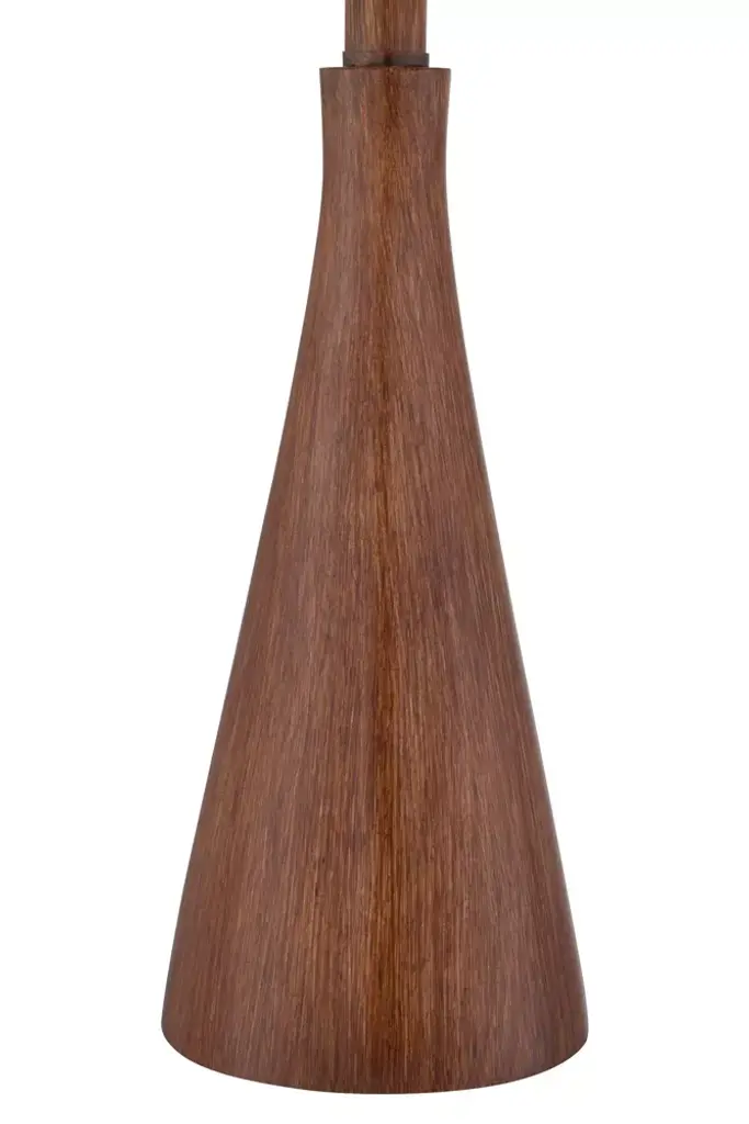 Add warmth to any space with these stylish and modern table lamps. From the 360 Lighting brand, the lamps have a tapered cone profile inspired by modern design and Mid-Century design. Each base is done in a dark faux wood finish and is topped by an oatmeal color fabric tapered drum shade. The warm and appealingly organic look is ideal for use on bedside tables, or add to a seating area for sleek and modern living room lighting.