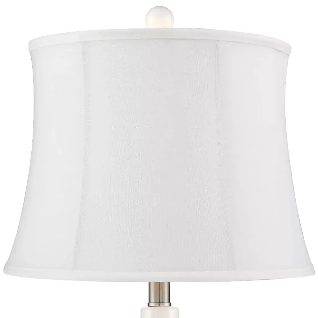 360 Lighting Jane Modern Table Lamps 25" High Set Of 2 White Ceramic Softback Fabric Drum Shade For Bedroom Living Room Bedside Nightstand Office Home