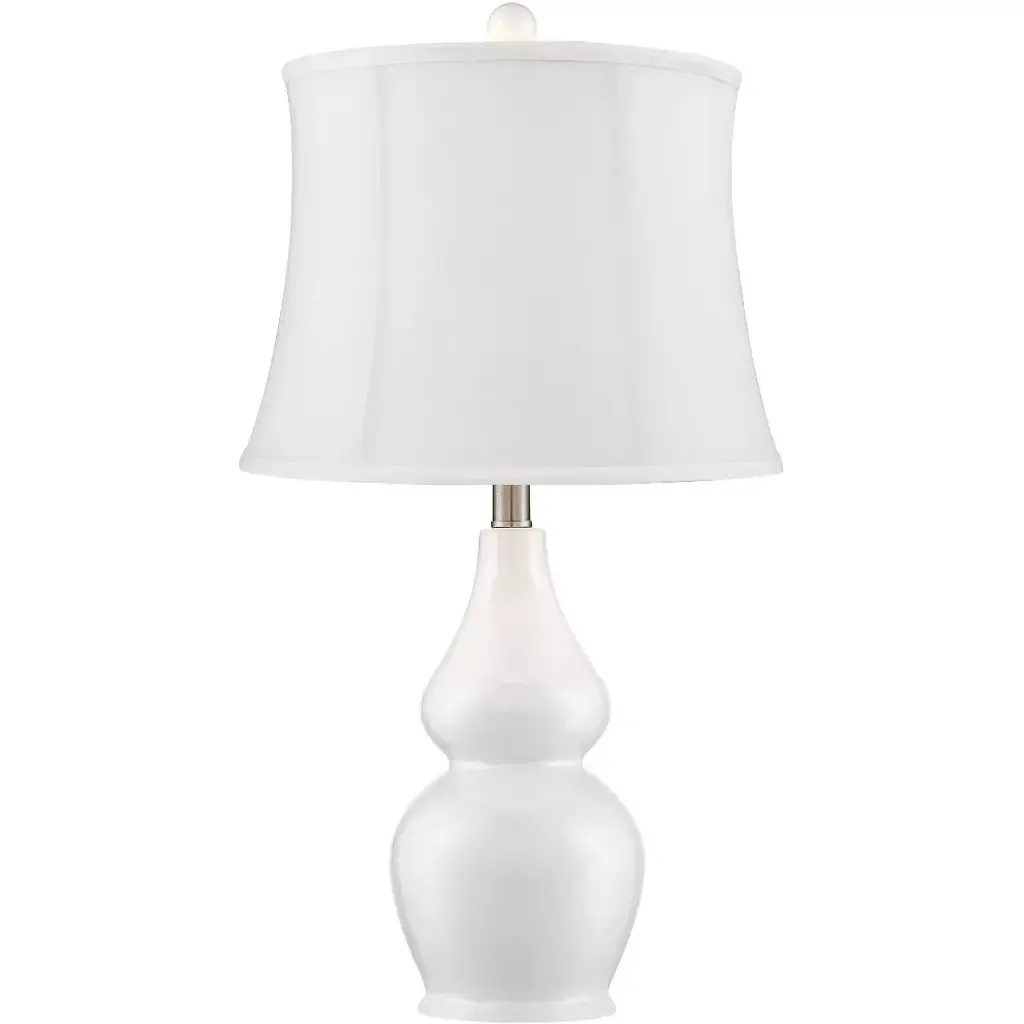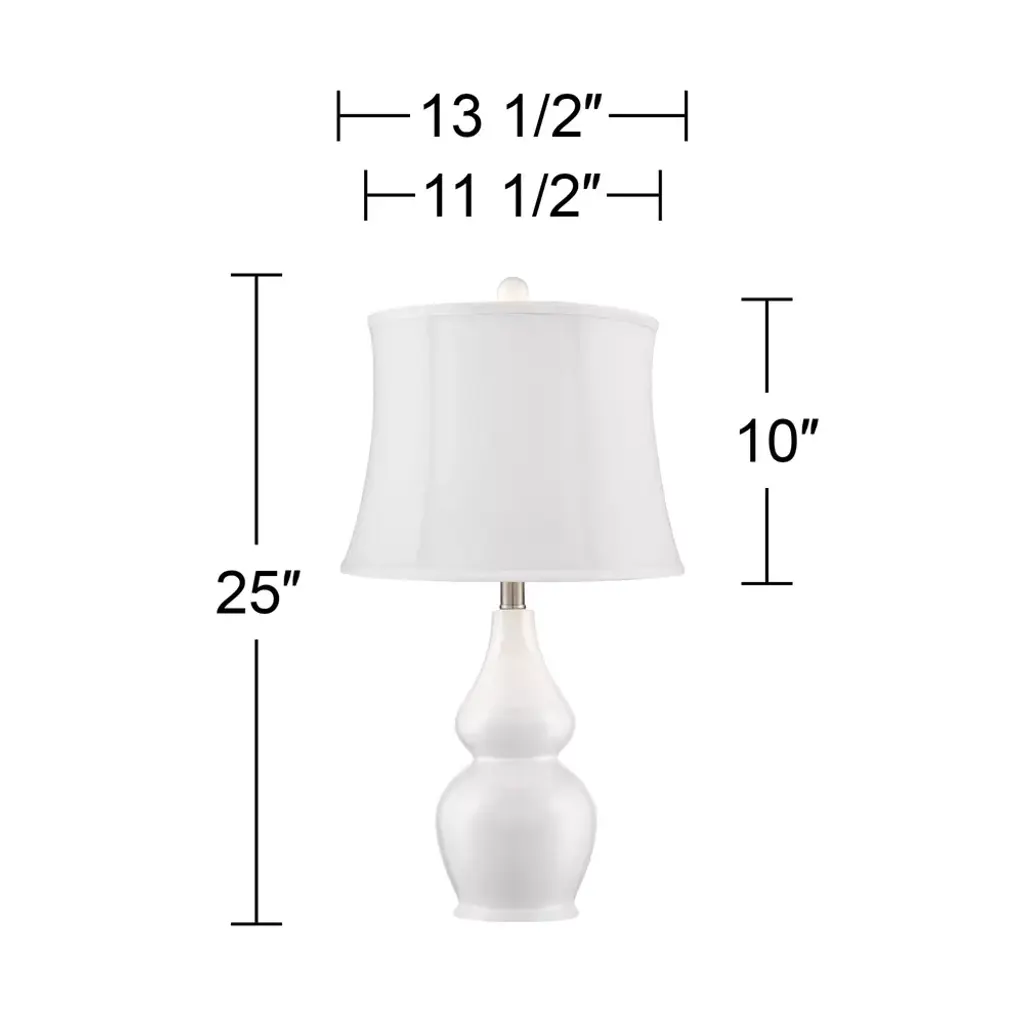 This Jane set of two double gourd table lamps from 360 Lighting is designed with ceramic to boast sleek charm and detail. The white finish reinforces the clean and distinct style of each lamp. With a ball finial atop each lamp, this set is decorated from top to bottom to ensure elegant and decorative style.