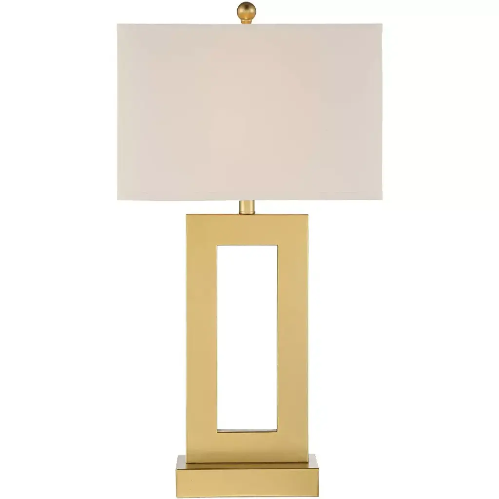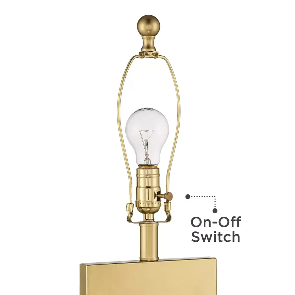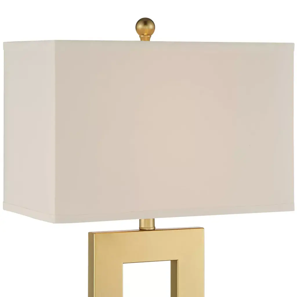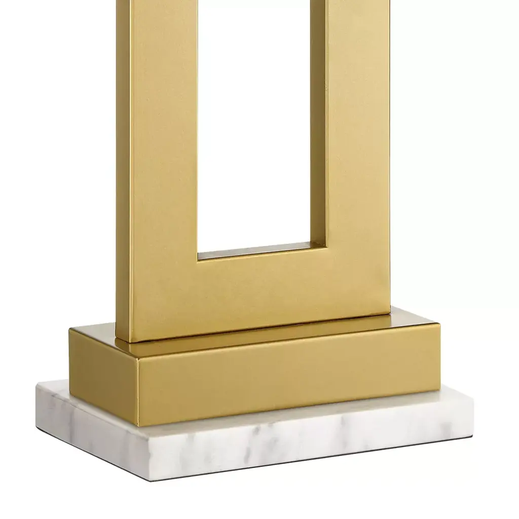 A creative modern table lamp with riser from the 360 Lighting that's ideal for bedroom or living room lighting. The lamp comes in a champagne finish body that has an eye-catching rectangular geometric look. A white oval shade on top provides a classy finishing touch. Comes with a rectangular white marble lamp riser stand you can place under the base for added height and visual style. Note that the real marble material may vary slightly in pattern and color.