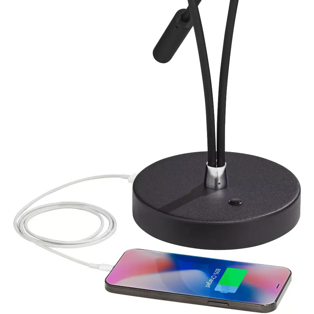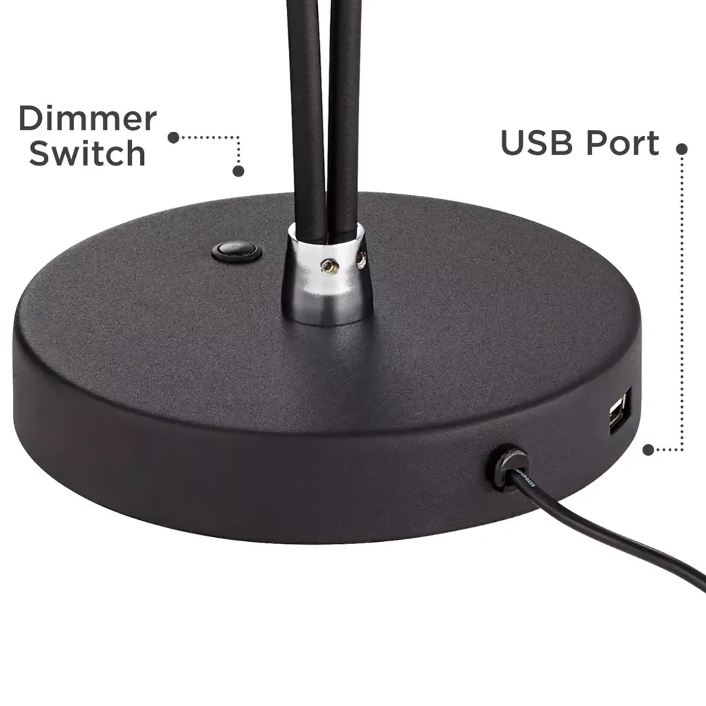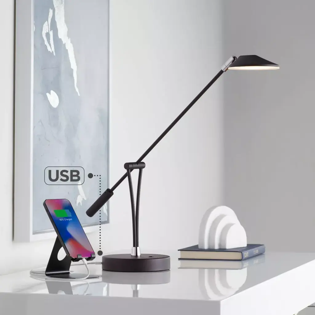 360 Lighting Modern Desk Table Lamp With Usb Charging Port Led 20" High Satin Black Metal Adjustable Arm For Bedroom Office